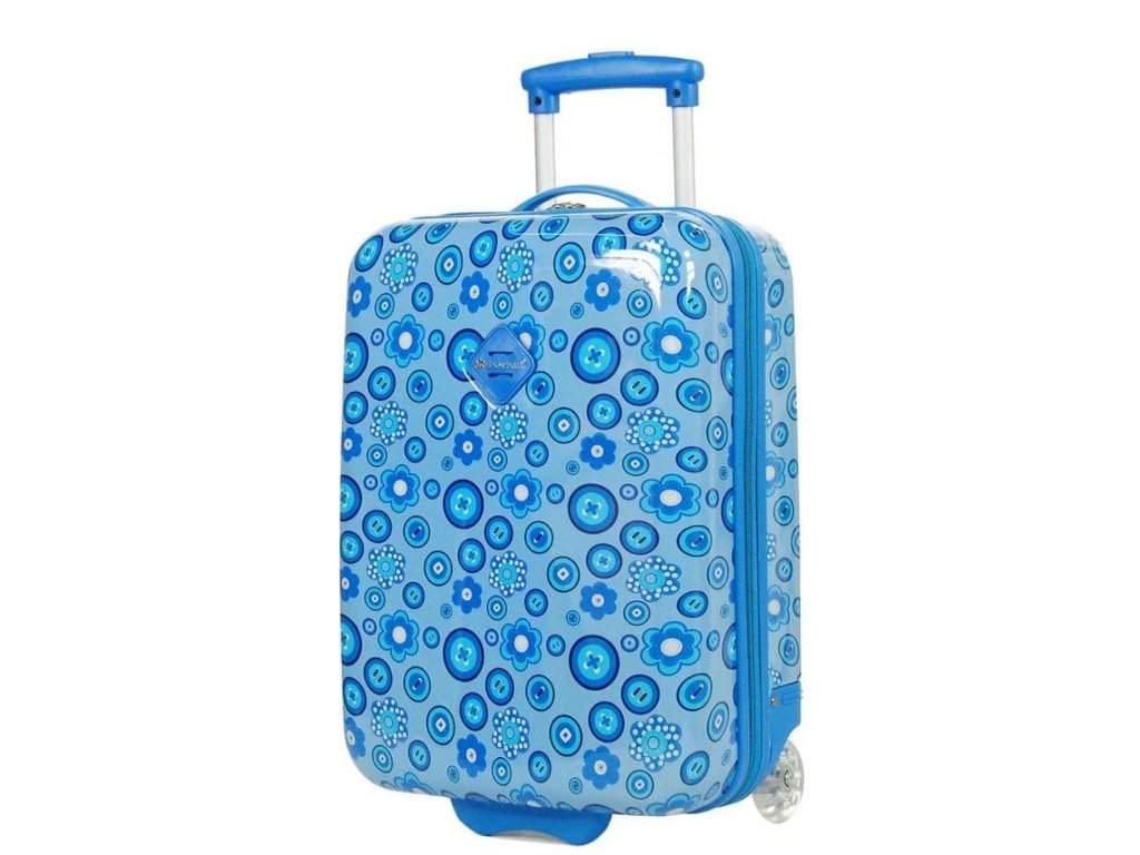 Kabinový plastový kufřík na kolečkách francouzské značky snowball s výsuvným madlem v modré barvě s motivem buttons.- Hlavní kapsa na zip.