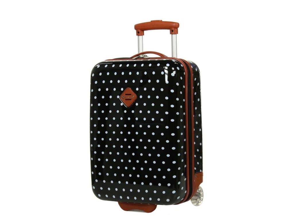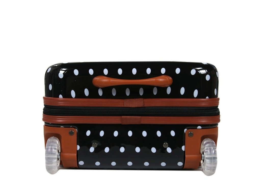 Moderní cestovní kufr s lesklým povrchem a dvěma inline kolečky značky Snowball v černé barvě s bílými puntíky a detaily v hnědé barvě. Tento stylový kufr ocení i náročnější zákazníci díky kvalitnímu zpracování a užitým materiálům. Má ochranu proti poškrábání a je vyroben tak, aby manipulace a jízda s ním byla co nejsnažší.