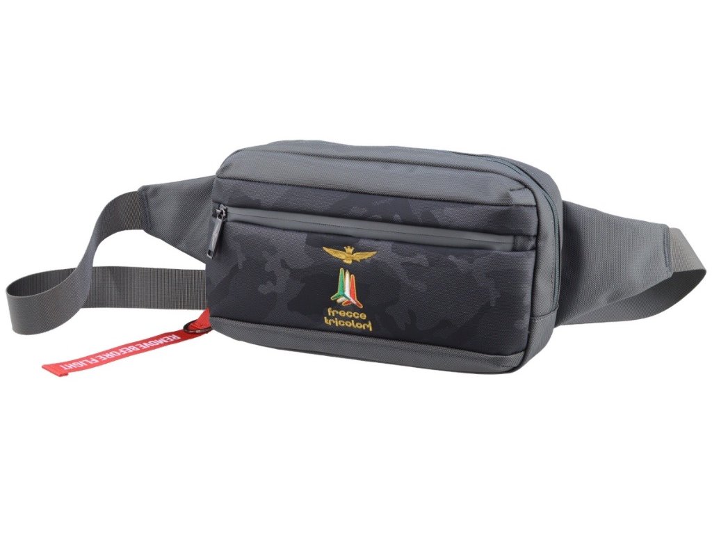 Moderní ledvinka-taška přes rameno luxusní značky Aeronautica Militare série Drone v antracitové barvě s maskáčovým potiskem. Ledvinku využijí zejména sportovní nadšenci pro svou pohodlnost a funkčnost. Lze ji však využít i při cestách jako malé zavazadlo na nejdůležitější osobní věci. Lze nosit kolem pasu nebo přes rameno.