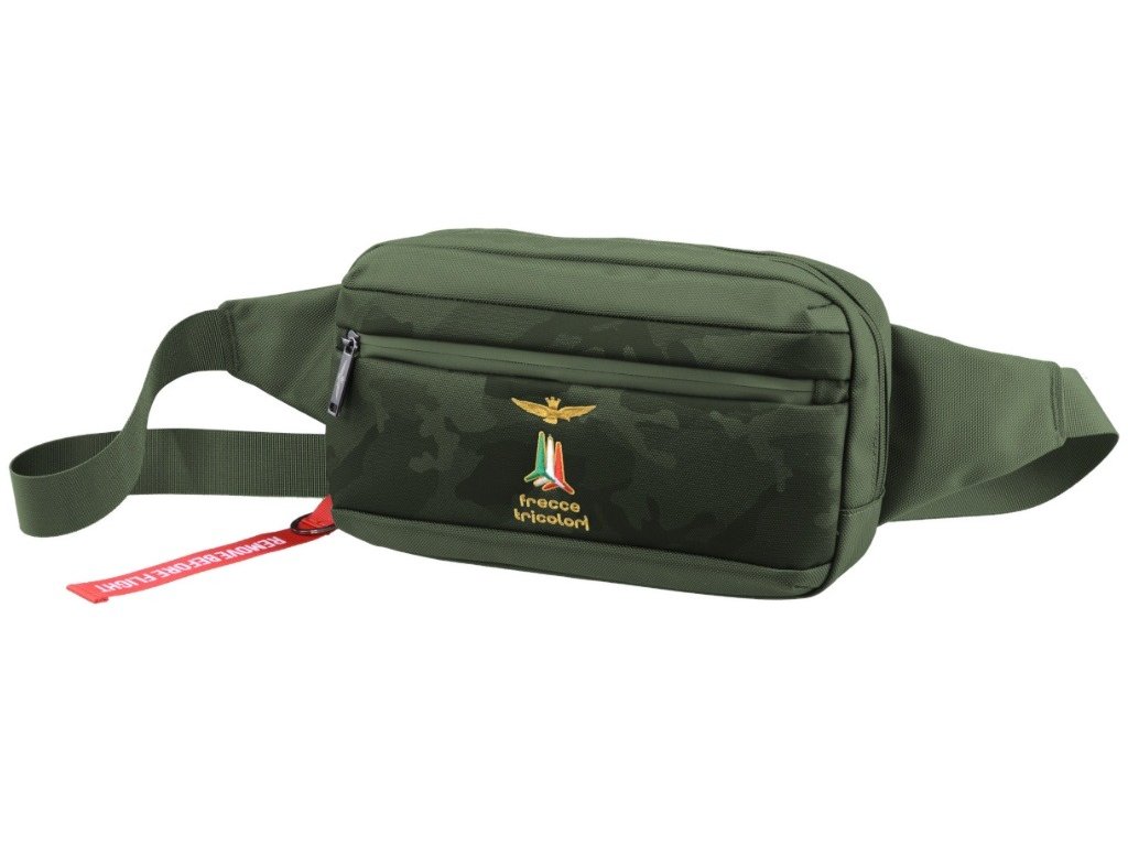 Moderní ledvinka-taška přes rameno luxusní značky Aeronautica Militare série Drone v zelené barvě s maskáčovým potiskem. Ledvinku využijí zejména sportovní nadšenci pro svou pohodlnost a funkčnost. Lze ji však využít i při cestách jako malé zavazadlo na nejdůležitější osobní věci. Lze nosit kolem pasu nebo přes rameno.