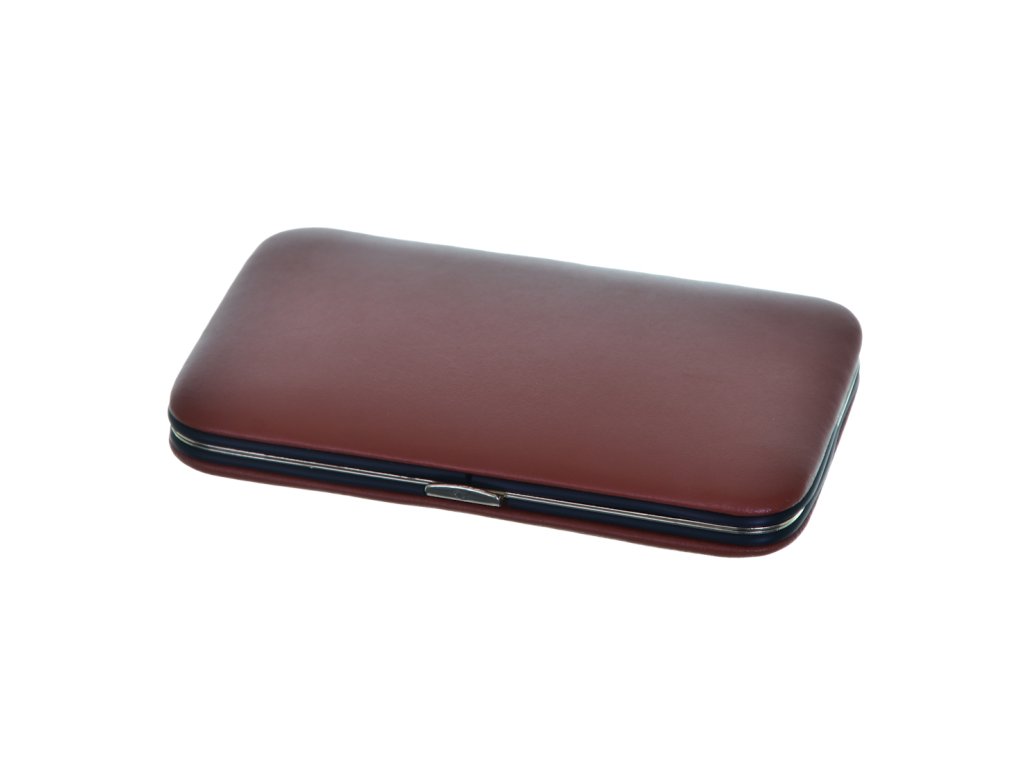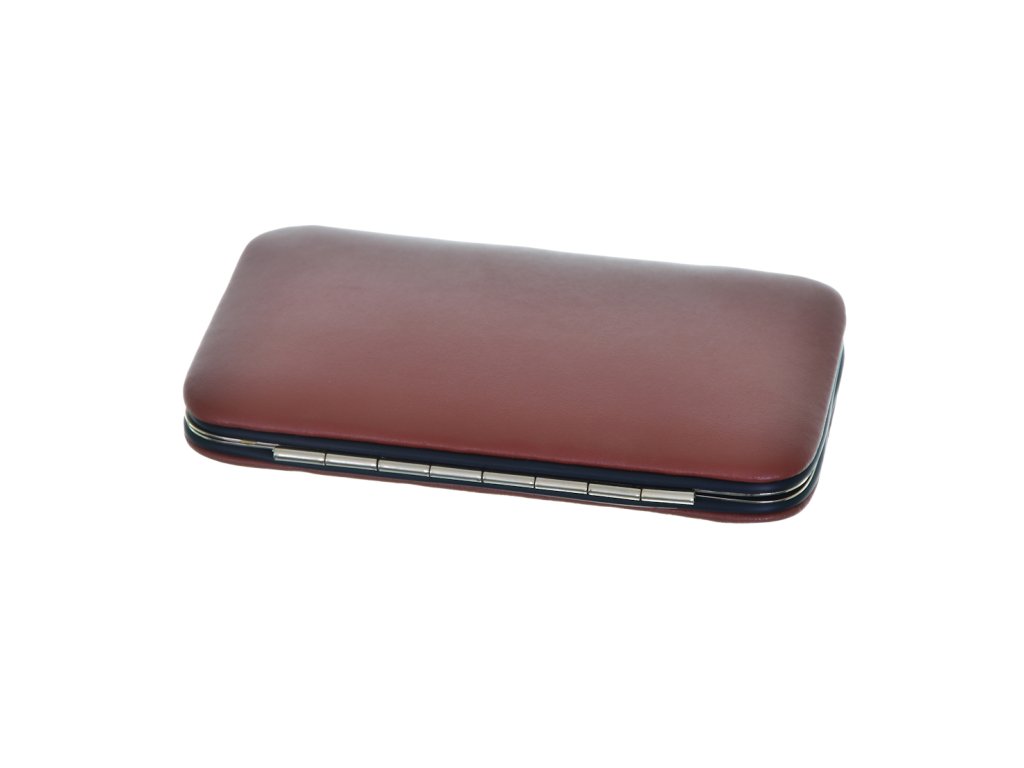 Elegantní rámová 5 dílná manikúra značky Premium Line made in solingen se safírovým pilníkem v hnědé barvě z ekokůže. U manikúry je lehce odřený , případně vytlačený vnitřní materiál od nástrojů. Jedná se o estetickou vadu. Manikúra je nová, plně funkční, nástroje zcela v pořádku.