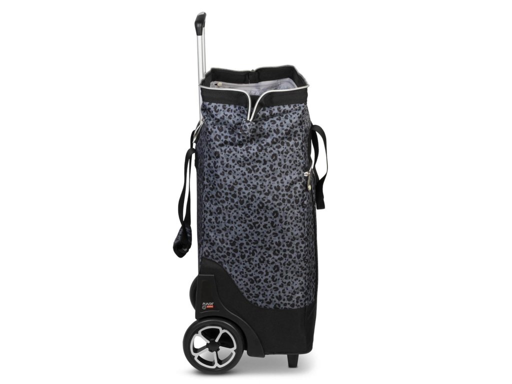 Skvělá nákupní taška s velkými kolečky pro pohodlnou jízdu značky Fabrizio v kombinaci tmavě šedé a černé barvy s jemným zvířecím potiskem. Dejte přednost velkým kolečkům a vaše nákupy se stanou srdeční záležitostí díky vysoké stabilitě a spolehlivosti tašky. Tašku můžete využít samozřejmě i jinak, na cestování nebo třeba k bazénu, nechcete-li nosit méně pohodlnou tašku do ruky.