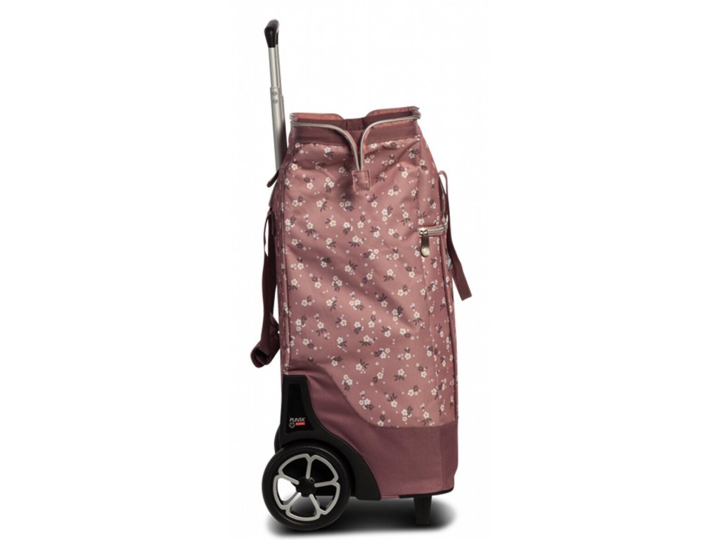 Skvělá nákupní taška s velkými kolečky pro pohodlnou jízdu značky Fabrizio v kombinaci světle a tmavě růžové barvy s potiskem malých kvítků. Dejte přednost velkým kolečkům a vaše nákupy se stanou srdeční záležitostí díky vysoké stabilitě a spolehlivosti tašky. Tašku můžete využít samozřejmě i jinak, na cestování nebo třeba k bazénu, nechcete-li nosit méně pohodlnou tašku do ruky.