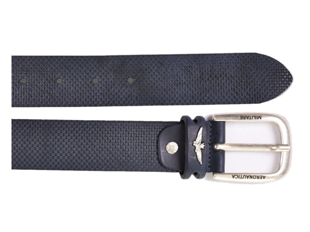 Pánský kožený opasek prestižní značky Aeronautica Militare v modré barvě 125 cm. Stylový pásek se zajímavou strukturou a logem AM, lze nosit ke kalhotám i šortkám. Určeno pro moderní, úspěšné muže, kteří sází na kvalitu a mají rádi sportovně-elegantní styl.