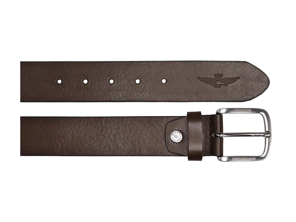 Pánský kožený pásek prestižní značky Aeronautica Militare v hnědé barvě 125 cm. Stylový pásek se zajímavou strukturou a logem AM, lze nosit ke kalhotám nebo do obleku. Určeno pro moderní, úspěšné muže, kteří sází na kvalitu a mají rádi elegantní styl.