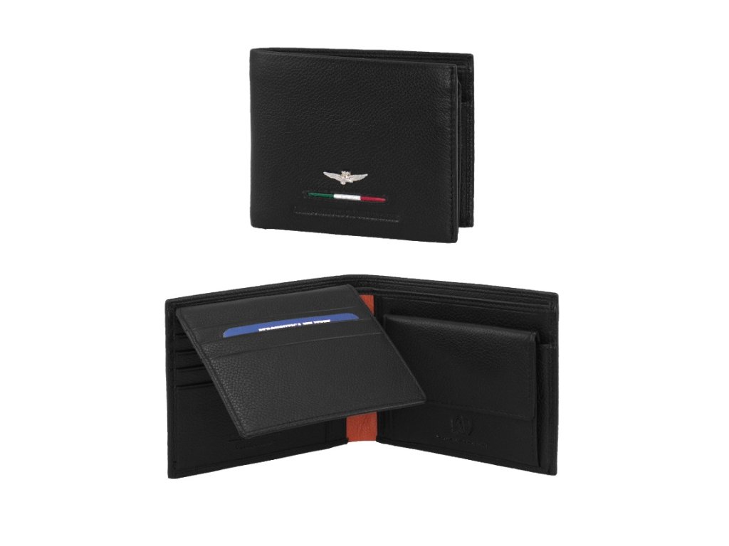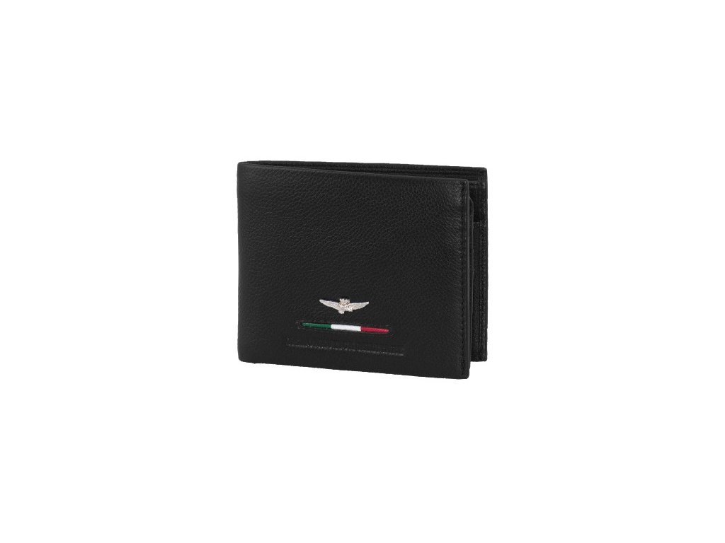 Pánská kožená peněženka italské prestižní značky Aeronautica Militare série Fighter v oblíbené černé barvě. Stylová peněženka, která se hodí pro sportovně založené muže, kteří si potrpí i na eleganci.