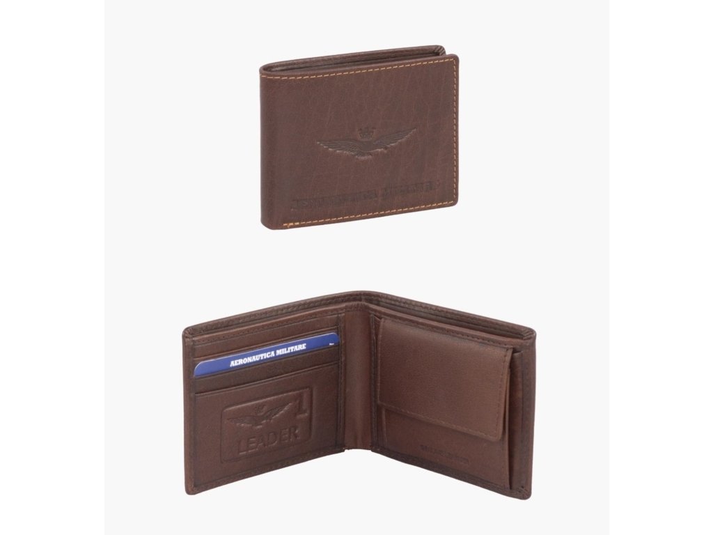 Pánská kožená peněženka italské prestižní značky Aeronautica Militare série New Eagle v hnědé barvě. Vyrobeno z vysoce kvalitní kůže s vintage efektem – tyto peněženky z řady New Eagle od značky Aeronautica Militare jsou ideálním doplňkem pro ty, kteří hledají styl i praktičnost. Na přední straně vyniká reliéfní logo s křídly, které dodává peněžence výrazný a elegantní charakter. Kontrastní švy a ruční zpracování podtrhují důraz na detail.