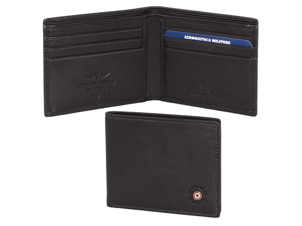 Pánská kožená peněženka italské prestižní značky Aeronautica Militare série Plate v oblíbené černé barvě. Stylová peněženka, která se hodí pro sportovně založené muže, kteří si potrpí i na eleganci.