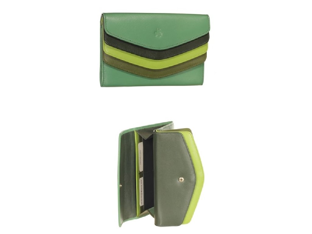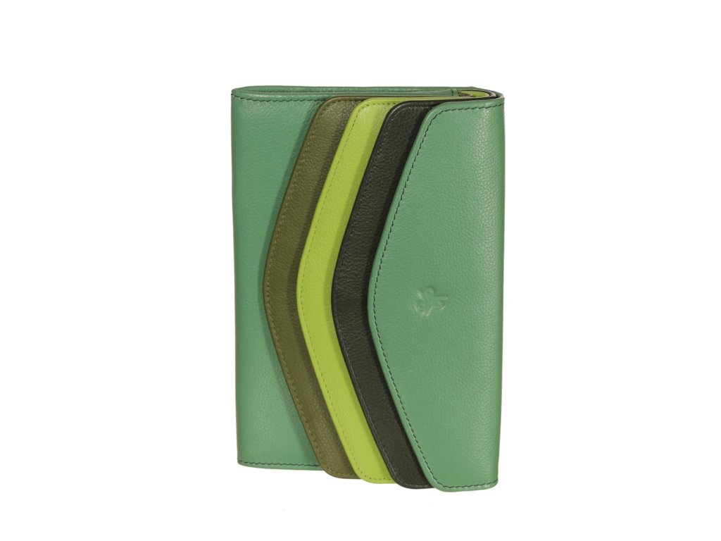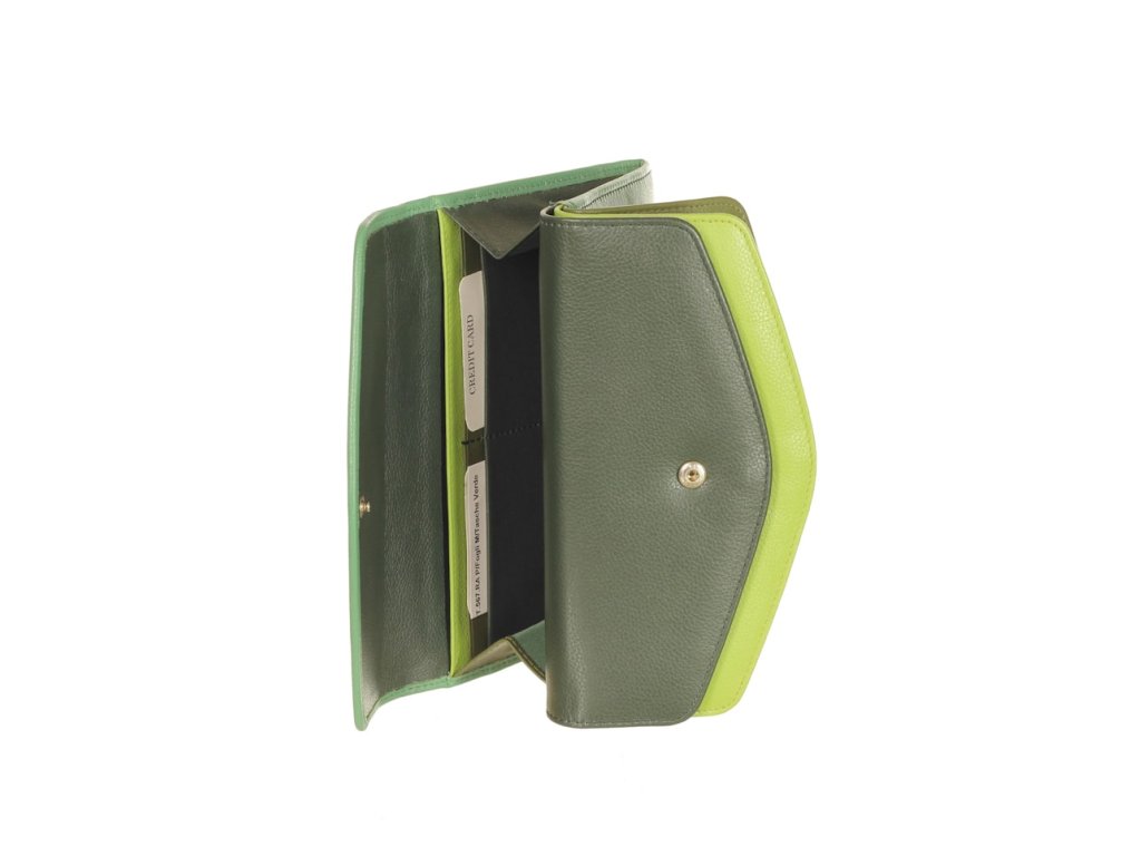 Dámská moderní celokožená peněženka z kolekce italské značky carraro v zelené (hráškové) barvě.
