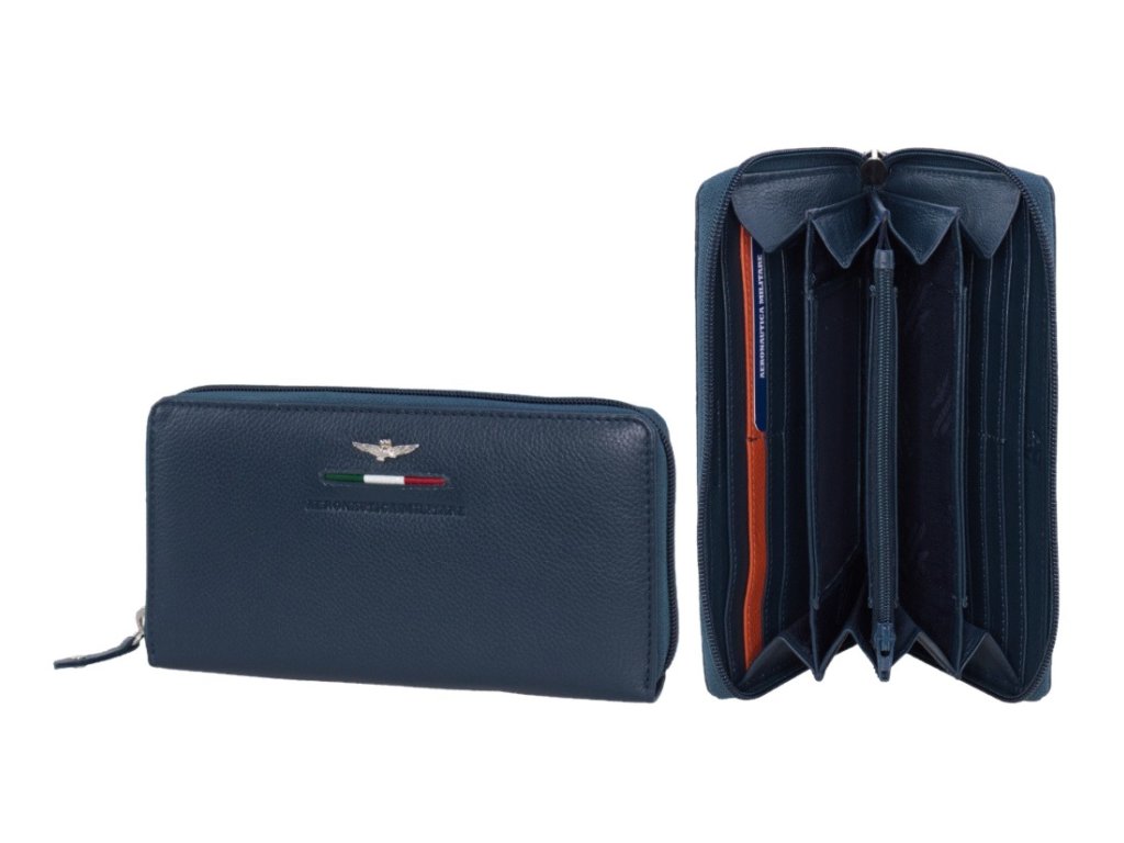 Dámská kožená peněženka italské prestižní značky Aeronautica Militare série Fighter v oblíbené modré barvě. Stylová peněženka, která se hodí pro sportovně založené ženy, kteří si potrpí i na eleganci.