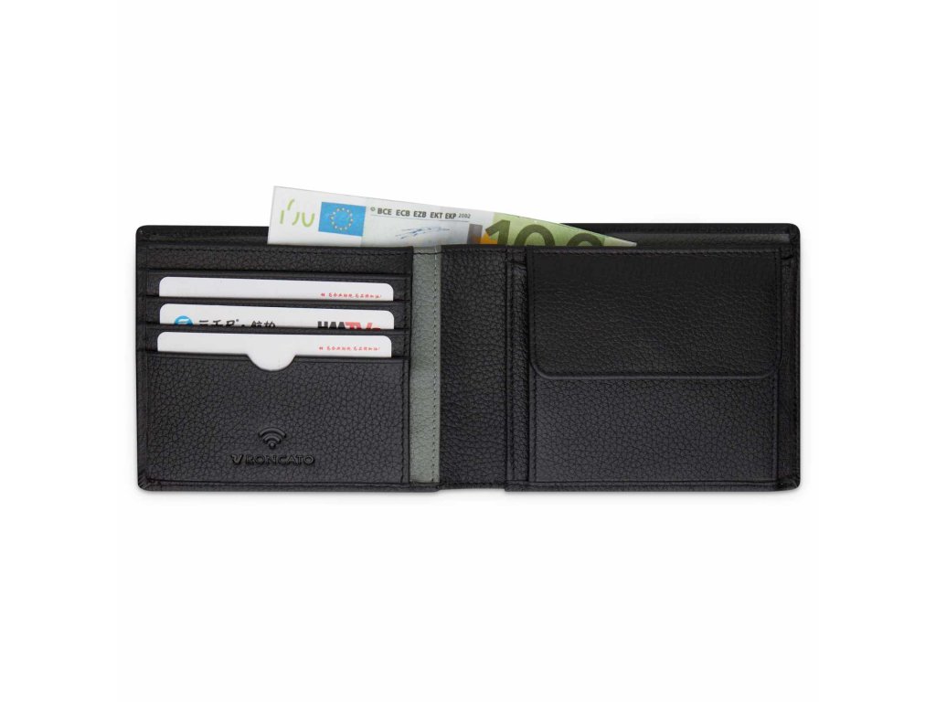 Pánská kožená peněženka od italské značky Roncato série Alaska pocket v oblíbené černé barvě s kapsou na mince. Kolekce Alaska, kompletní a promyšleně strukturovaná, je celá vyrobena z pravé kůže a zahrnuje peněženky, business batohy, pánské tašky a crossbody tašky. Používáme dva typy kůže: měkkou „dollar“ kůži – jedná se o velmi jemnou lícovou kůži s lehkým povrchovým zrněním, příjemnou na dotek – a hladkou nappu, která vytváří kontrast a dodává výrobkům na eleganci. Jde o velmi kvalitní lícovou kůži odolnou vůči vodě i poškrábání, s vysokou stálostí barev.