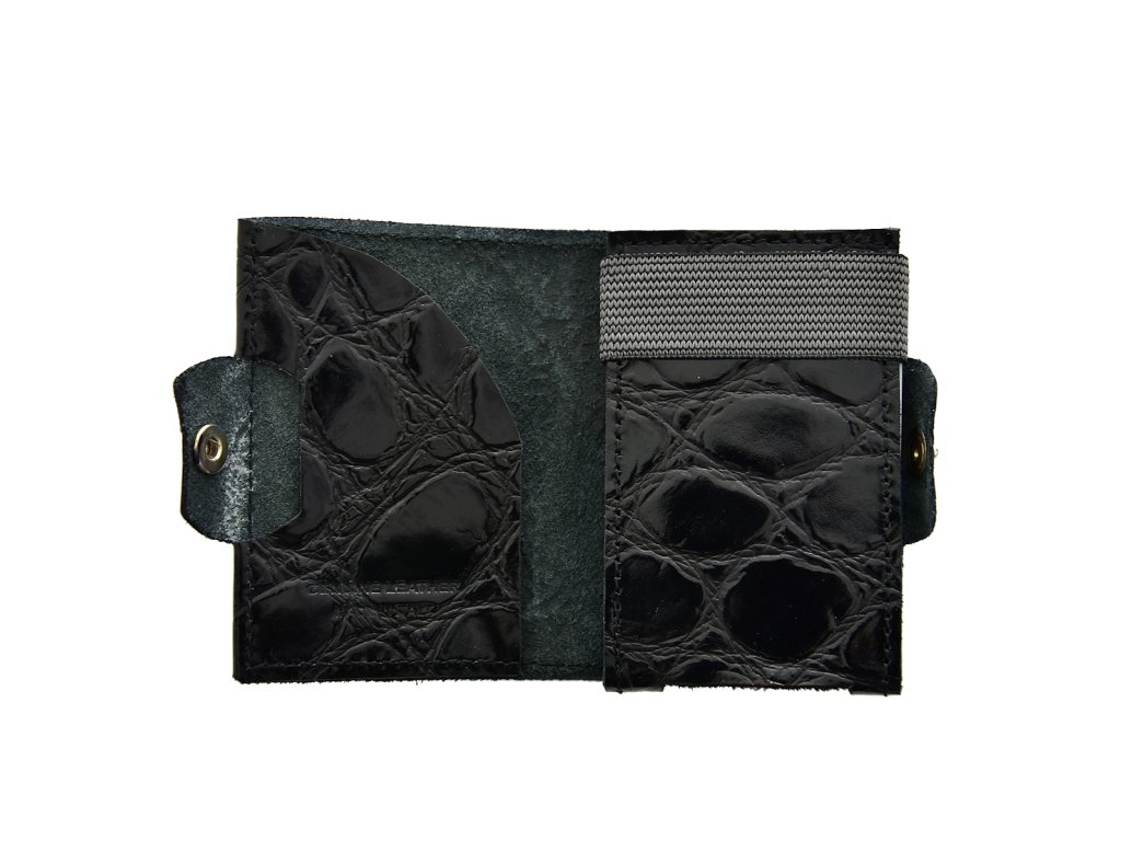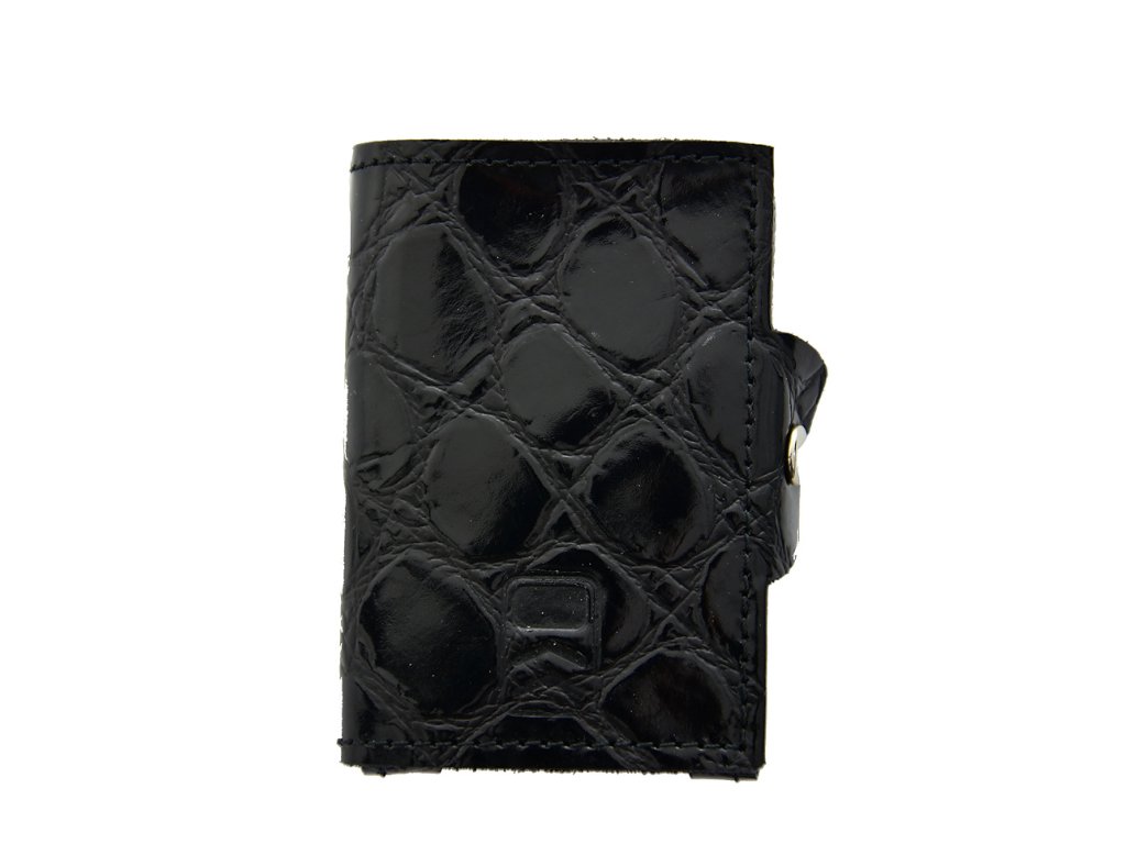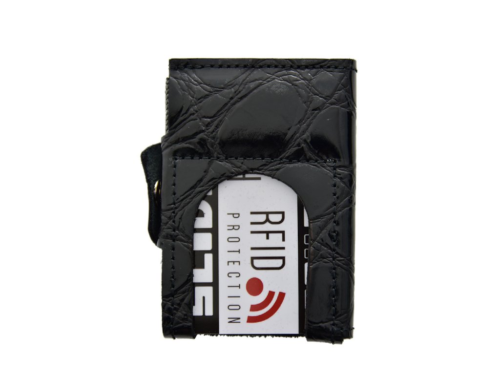Kvalitní peněženka značky SlideHUB z distribuce italské firmy Dielle v oblíbené černé barvě s imitací krokodýlí kůže. Peněženka a pouzdro na kreditní karty či vizitky v jednom. Peněženka je opatřena ochranou RFID, která zajišťuje bezpečnost bezkontaktních karet. Už se Vám nestane, že by jste nemohli pouzdro s náporem karet zapnout.