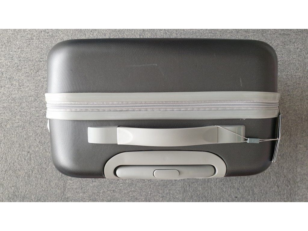 Plastový kufr 60 cm v ocelové barvě s prolisy z kolekce německé značky scion na 4 otočných kolečkách o 360 stupňů v moderním designu. Kufr je nový nepoužitý, na horní straně je trochu poškrábán viz foto. Kufr je plně funkční.