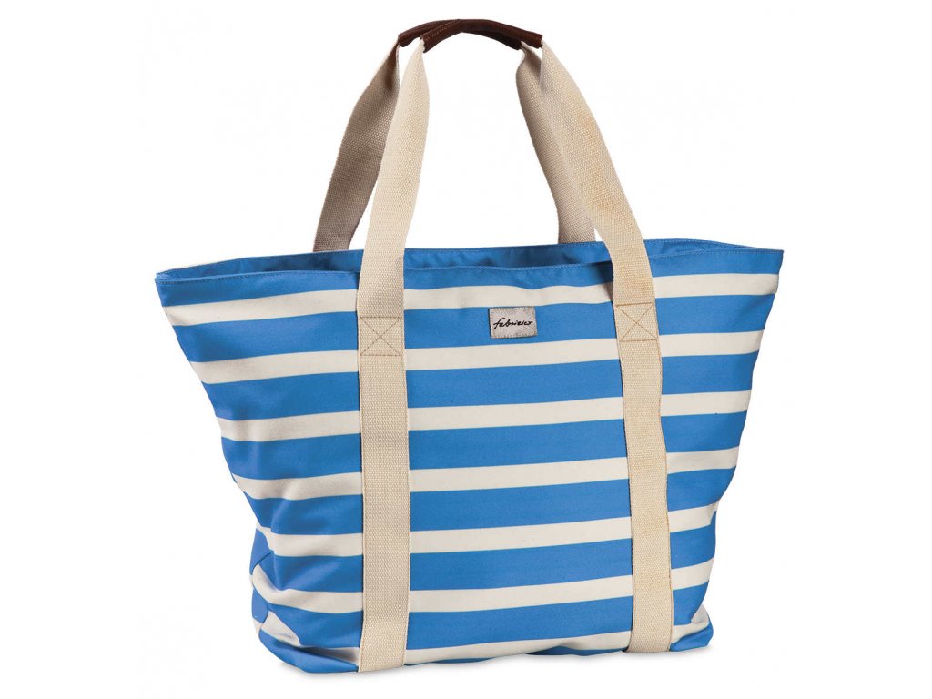 Plážová taška přes rameno nebo do ruky německé značky fabrizio v modré barvě s pruhy.