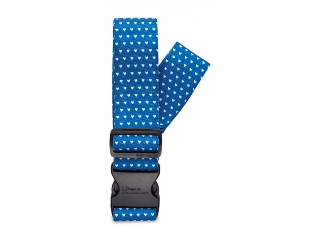Popruh na cestovní kufr značky Fabrizio v modré barvě s potiskem srdíček. Popruh lépe chrání obsah vašeho kufru. Je dostatečně dlouhý a přizpůsobivý.
