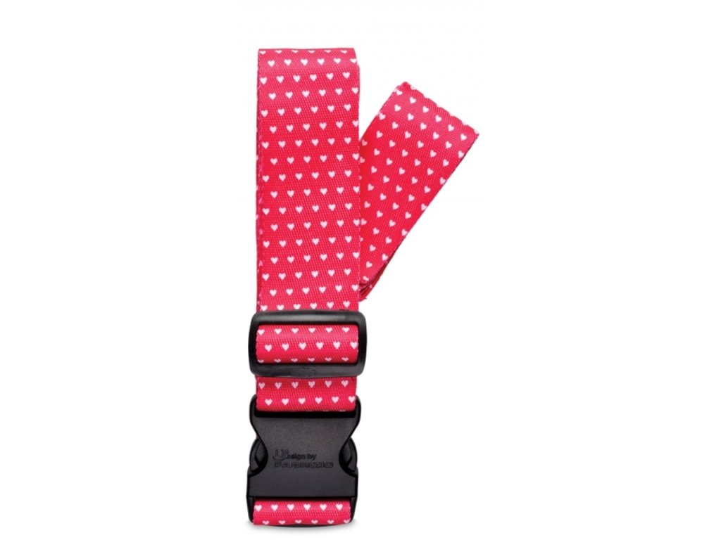 Popruh na cestovní kufr značky Fabrizio v růžové barvě s potiskem srdíček. Popruh lépe chrání obsah vašeho kufru. Je dostatečně dlouhý a přizpůsobivý.