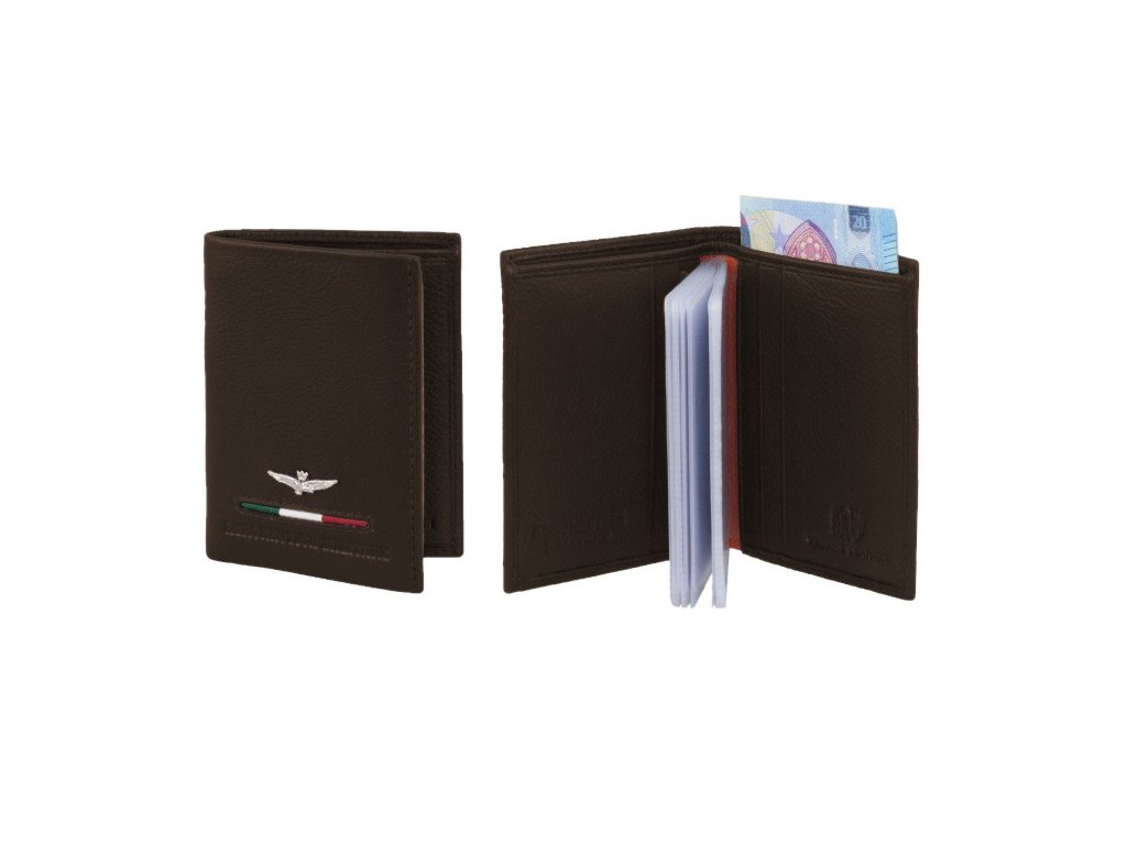 Celokožené moderní pouzdro prestižní značky Aeronautica Militare na platební karty nebo vizitky v hnědé barvě.