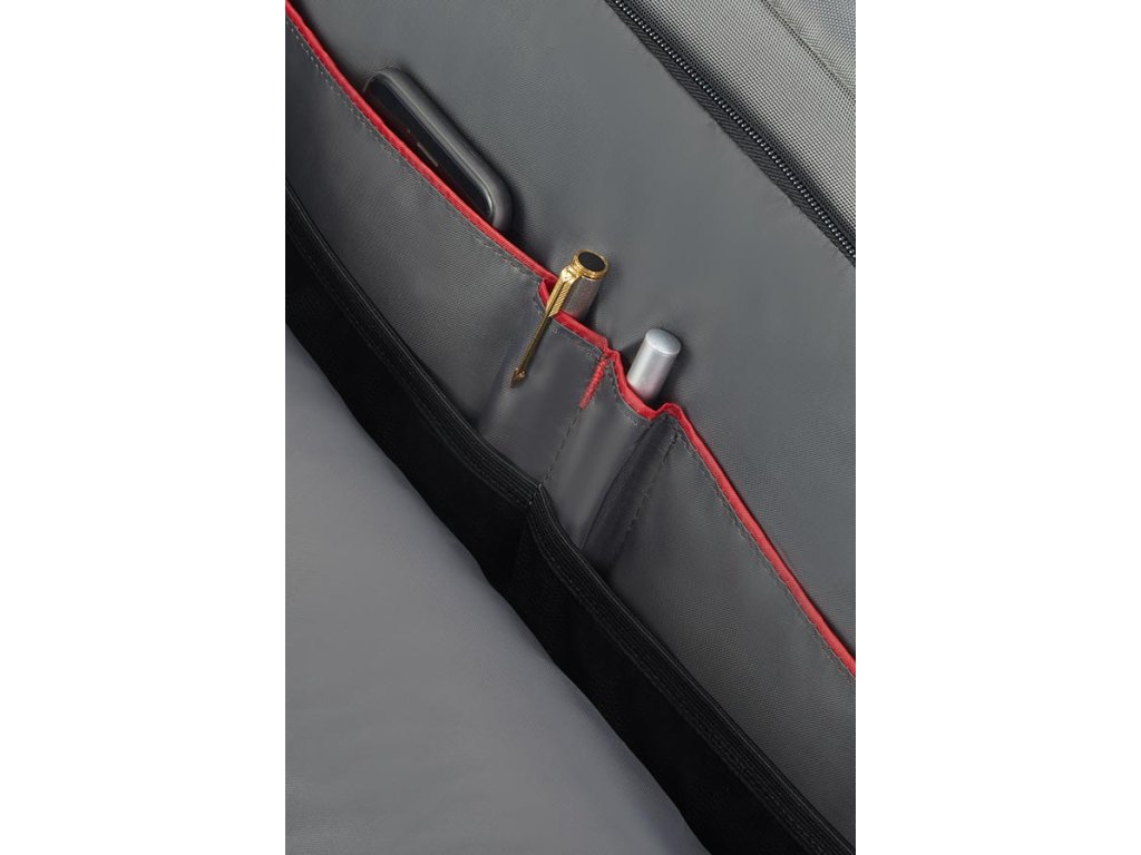 Brašna na notebookSamsonite Bailhandle 13,3" z kolekce Guardit 2 má z přední strany dvě samostatné kapsy na zip, z toho jednu s organizérem. V hlavní části je polstrovaná přihrádka na notebook s páskem na připevnění, přihrádka na tablet a kapsa např. na dokumenty (A4). Brašna má nastavitelný odnímatelný popruh na rameno a navlékací pásek sloužící ke snadnému připevnění na rukojeť kufru.