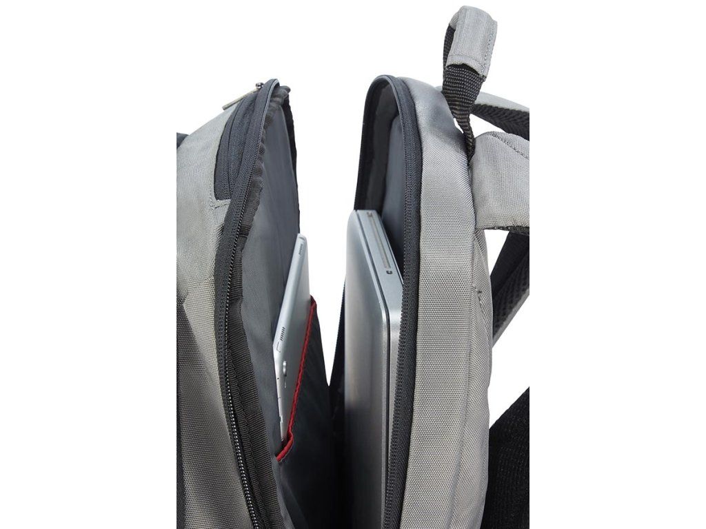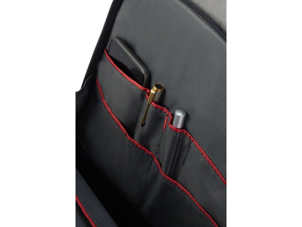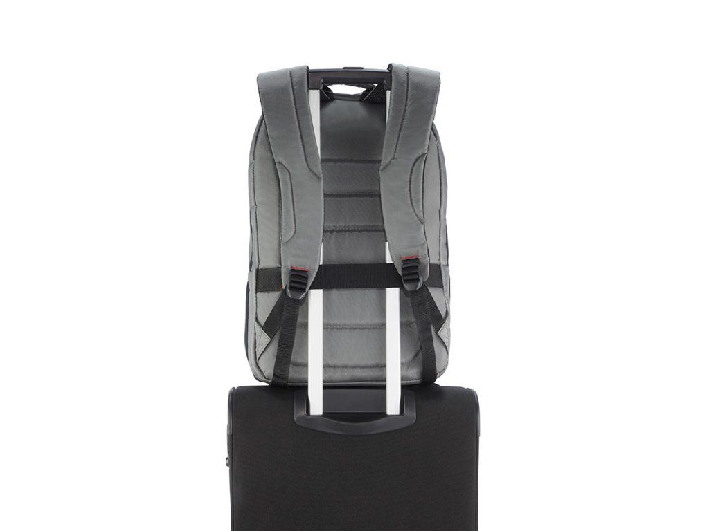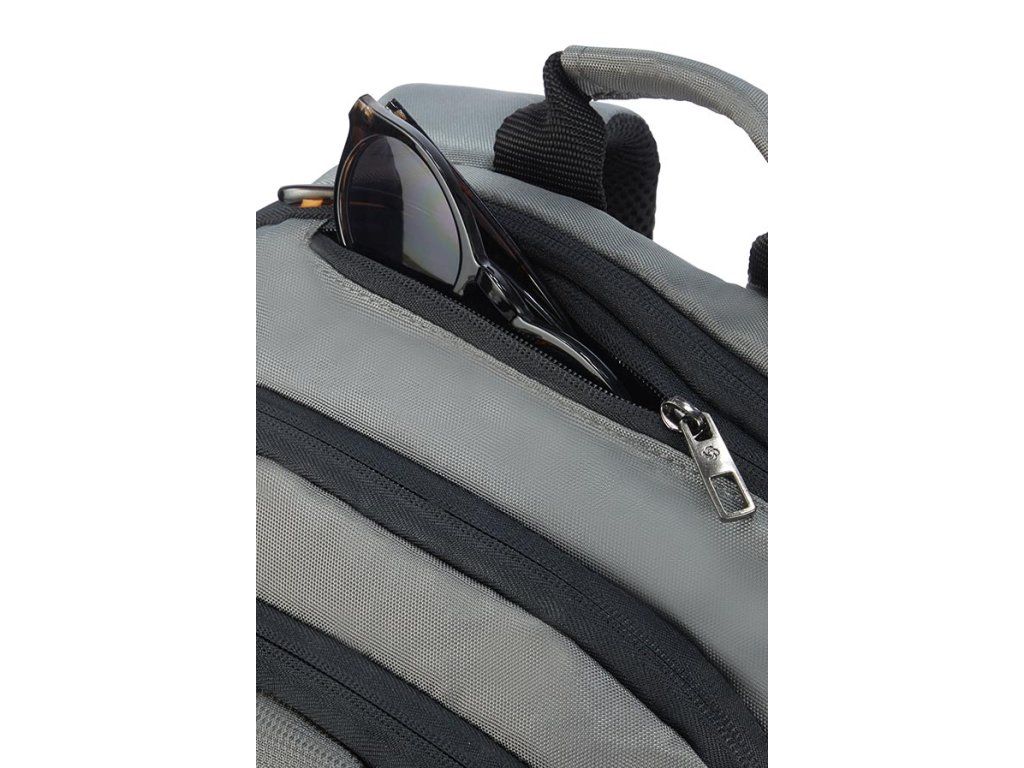 Batoh na notebook Samsonite LAPT. BACKPACKL 17,3" je rozdělen dotří částí. V první části je organizér + dvě vetší kapsy, ve druhé je kapsa na zip, kapsana dokumenty + volný prostor. Ve třetí části je polstrování na uložení notebooku a přihrádka na tablet. Batoh má ochranné zádové polstrování, nastavitelné zádové popruhy a tzv. návlekový pásek sloužící k připevnění na rukojeť kufru.Materiál: polyester