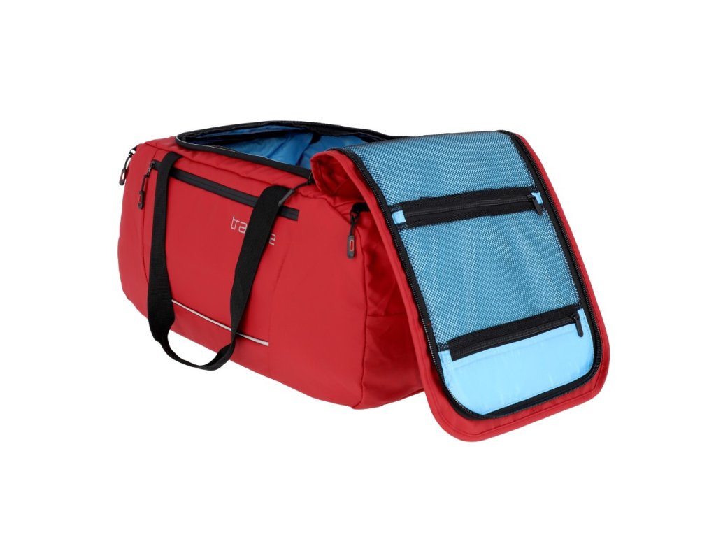 Cestovní taška 60 cm značky Travelite v červené barvě. Tato moderní stylová taška je ideální pro volný čas, pro cestování nebo za sportem.