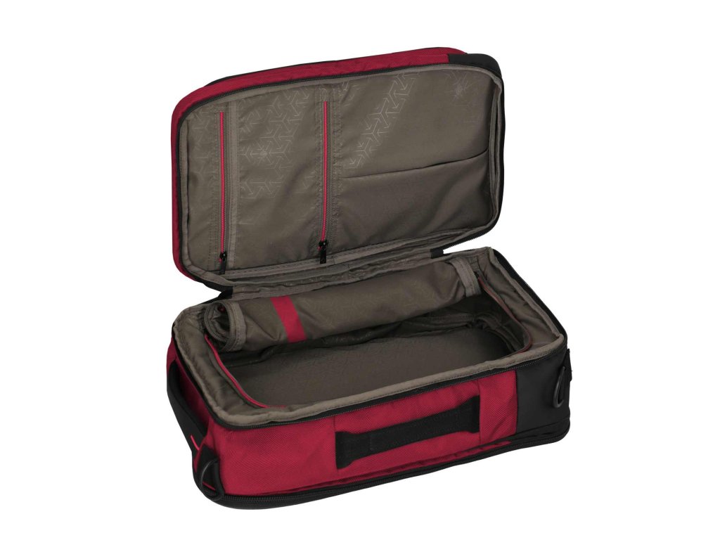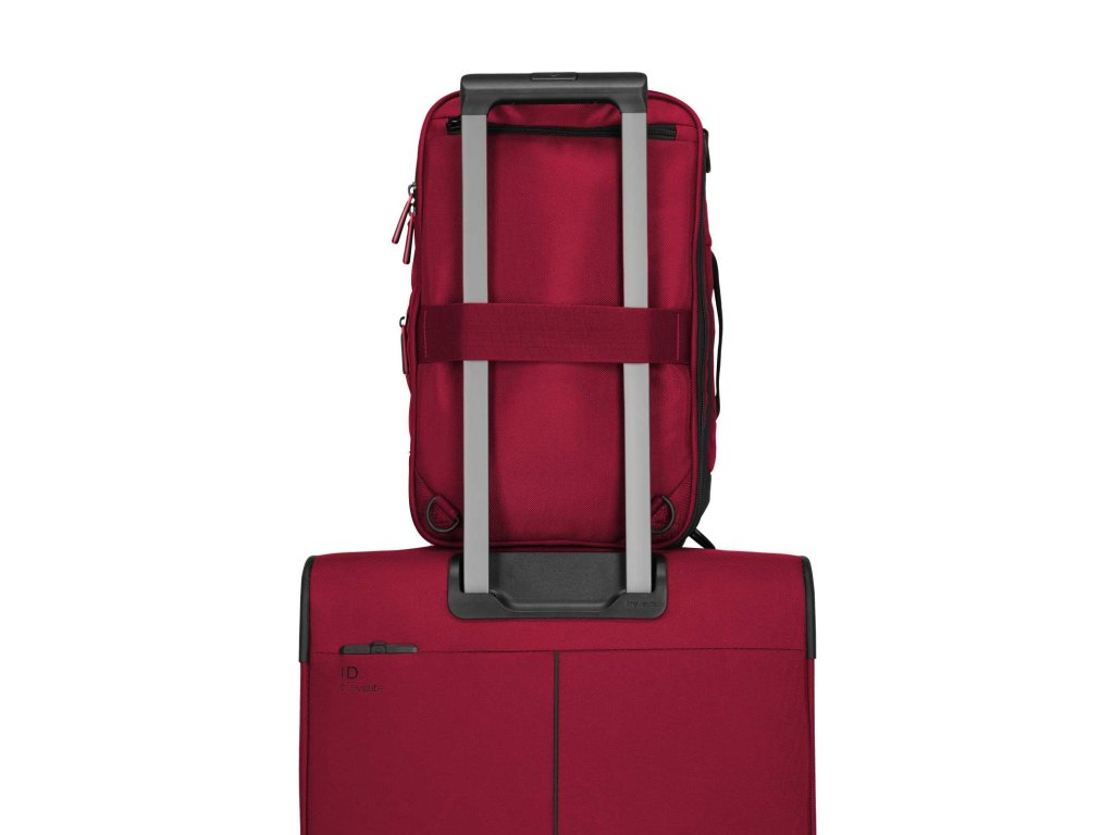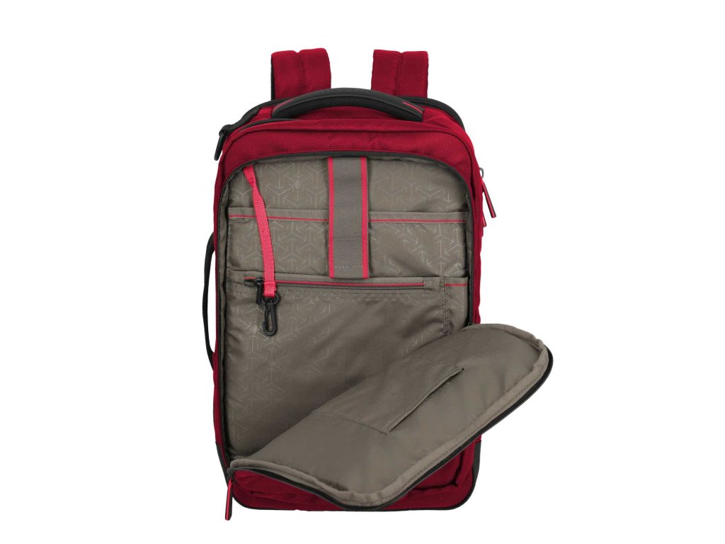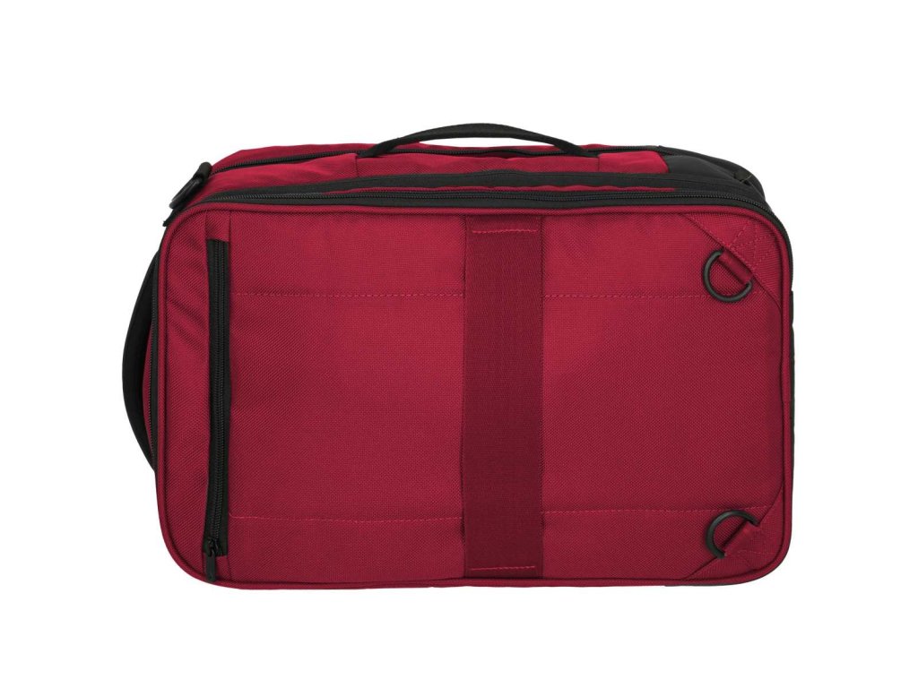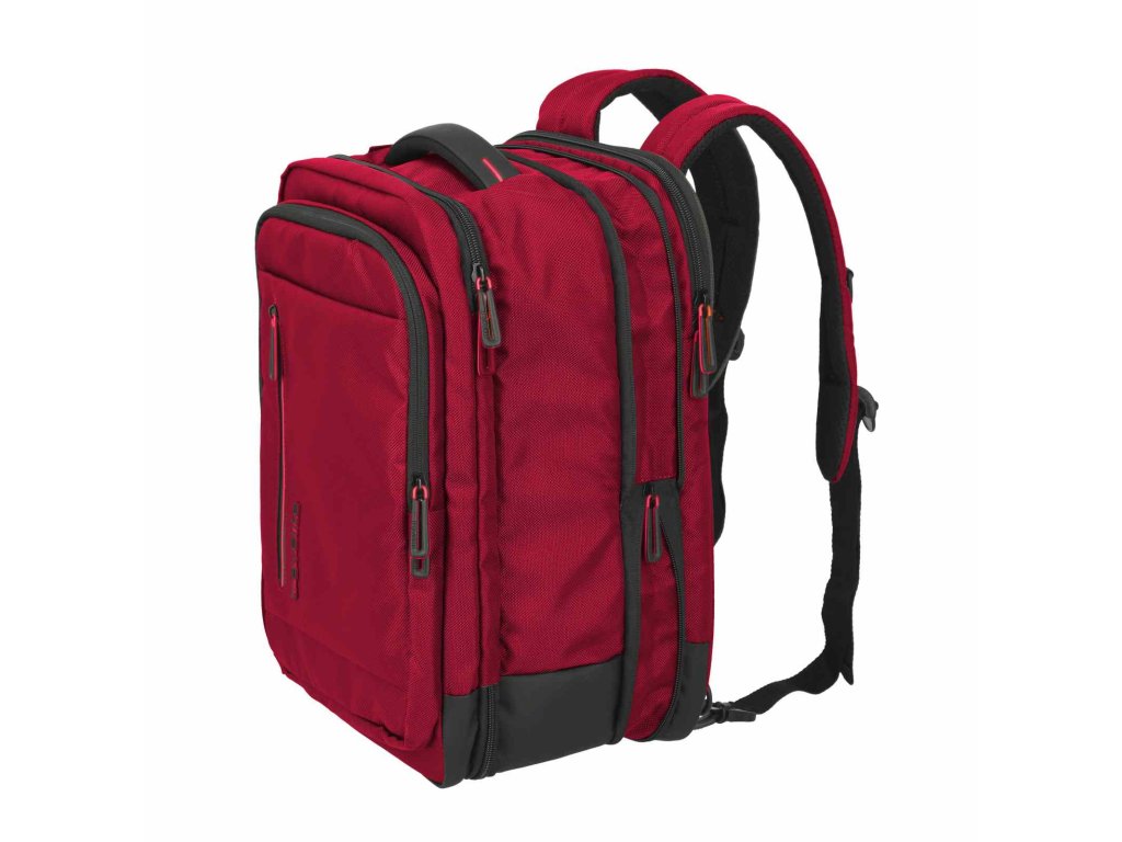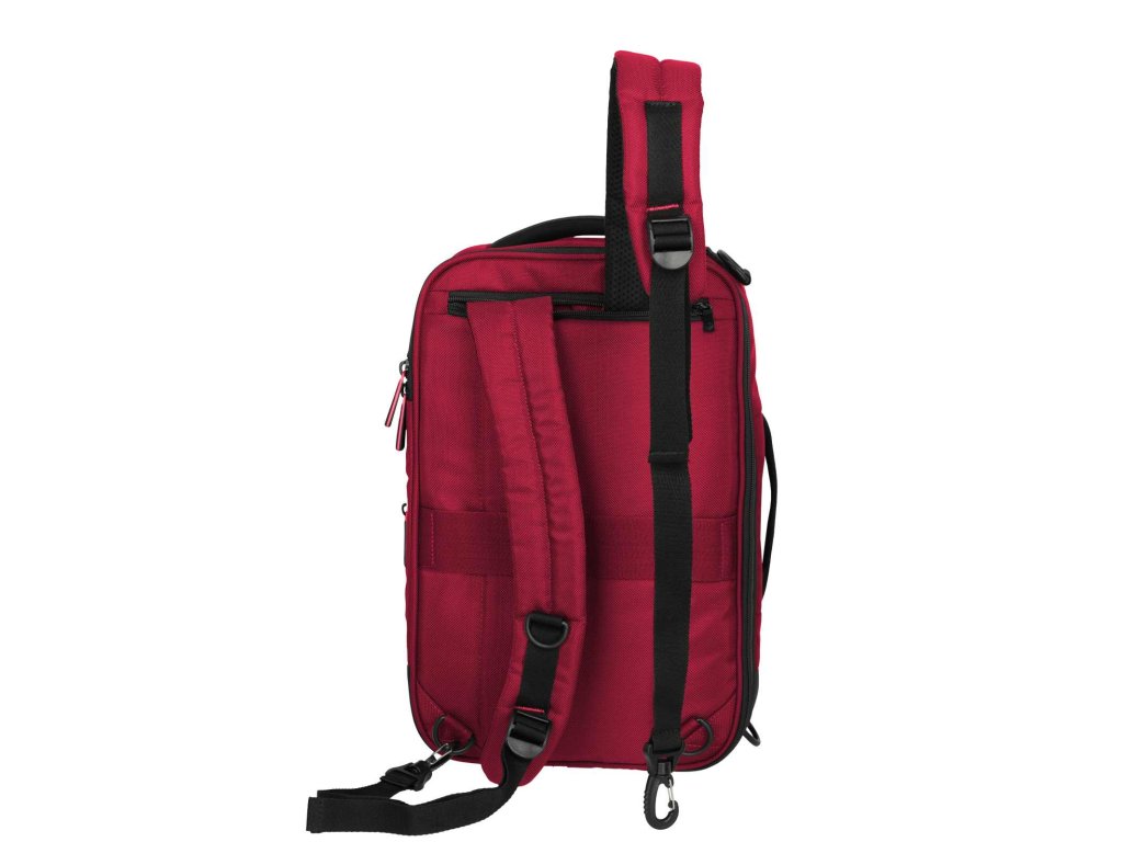 Textilní batoh-taška do letadla německé značky Travelite série Crosslite 5.0 v tmavě červené barvě. Toto palubní zavazadlo si můžete vzít s sebou do letadla, jak vyžaduje společnost Ryanair. Má rozměry, které akceptuje většina leteckých společností. Kaž