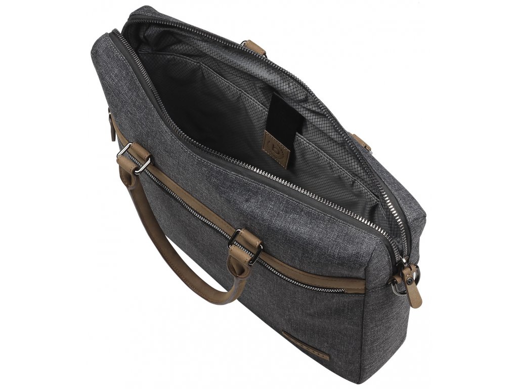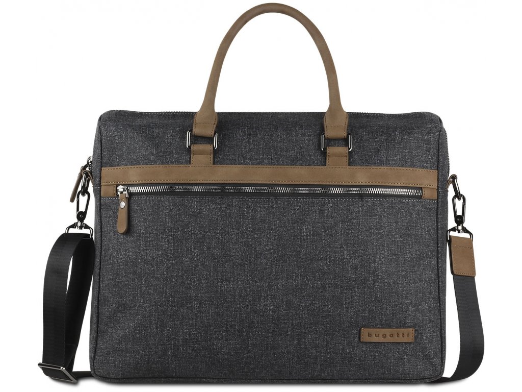 Business taška ze série Luce značky Bugatti pro přenášení Vašeho notebooku a pracovních dokladů ve formátu A4. Taška je vyrobená z šedého textilního polyesteru v kombinaci hnědých detailů, určitě se stane Vaším oblíbeným společníkem do kanceláře i na volný čas.