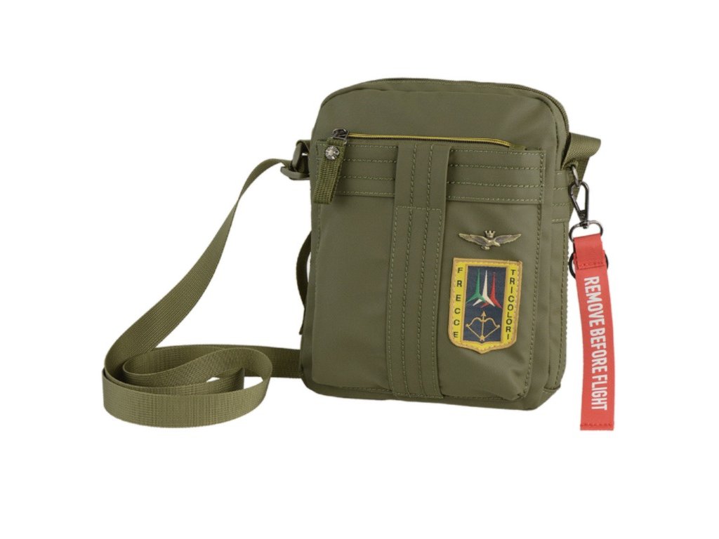 Stylová textilní taška přes rameno nebo křížem na osobní věci prestižní značky Aeronautica Militare série Frecce v zelené barvě. Tašku si oblíbíte díky komfortním rozměrům a uschováte do ní všechny své nejdůležitější věci, jako je peněženka, mobilní telefon, doklady i klíče.