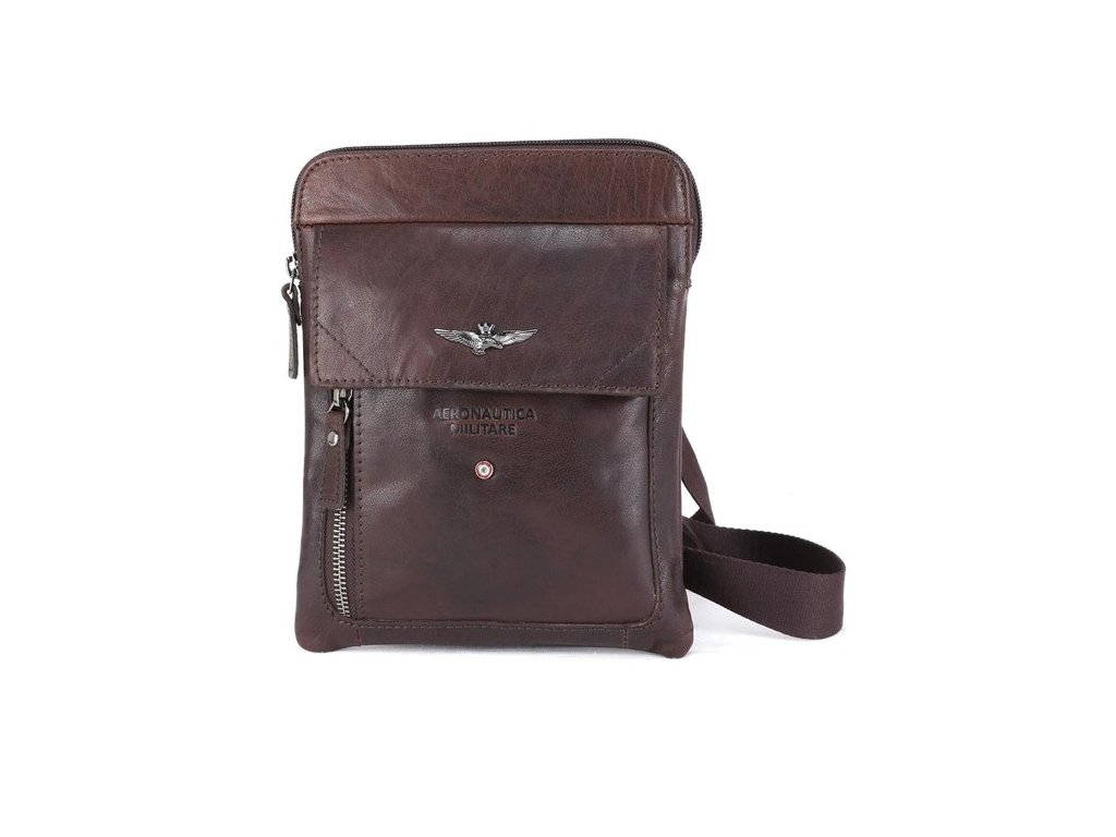 Praktická kožená taška přes rameno nebo křížem na osobní věci prestižní značky Aeronautica Militare v tmavší hnědé barvě. Tašku si oblíbíte díky komfortním rozměrům a uschováte do ní všechny své nejdůležitější věci, jako je peněženka, mobilní telefon, doklady i klíče. Pořiďte si tento luxusní, vkusný a moderní doplněk!