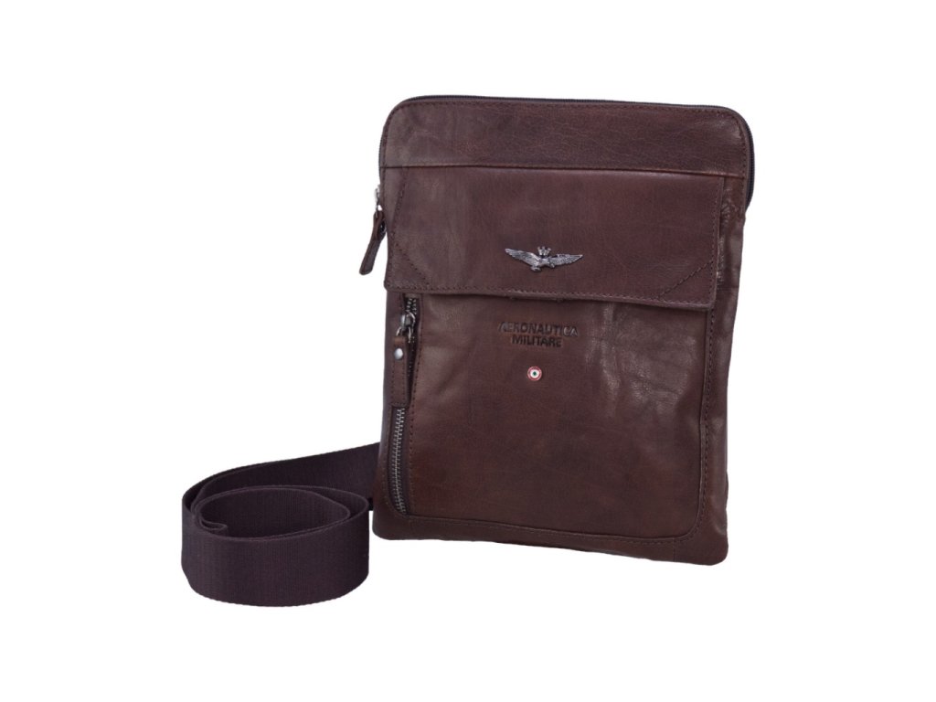 Praktická kožená taška přes rameno nebo křížem na osobní věci prestižní značky Aeronautica Militare v tmavší hnědé barvě. Tašku si oblíbíte díky komfortním rozměrům a uschováte do ní všechny své nejdůležitější věci, jako je peněženka, mobilní telefon, doklady i klíče. Pořiďte si tento luxusní, vkusný a moderní doplněk!