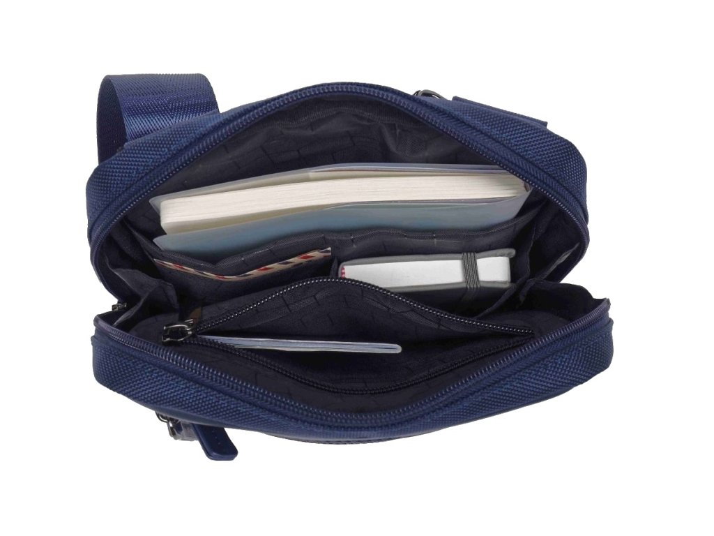 Taška přes rameno nebo cross velikosti M značky Beverly Hills Polo Club v modré barvě série Boston. Crossbody taška Beverly Hills Polo Club Boston M je ideální volba pro muže, kteří chtějí mít vše důležité po ruce, ale nechce se jim tahat batoh ani plné kapsy. Čistý černý design v kombinaci s jemným logem BHPC působí elegantně a univerzálně – hodí se do města, do práce i na cestování. Praktické členění nabízí hlavní prostor na zip a několik předních kapes pro rychlý přístup k mobilu, peněžence nebo klíčům. Přední zipová kapsa a otevřená přihrádka umožňují lepší organizaci drobností, které potřebujete mít okamžitě k dispozici. Nastavitelný ramenní popruh zajišťuje pohodlné nošení přes rameno i křížem přes tělo.
