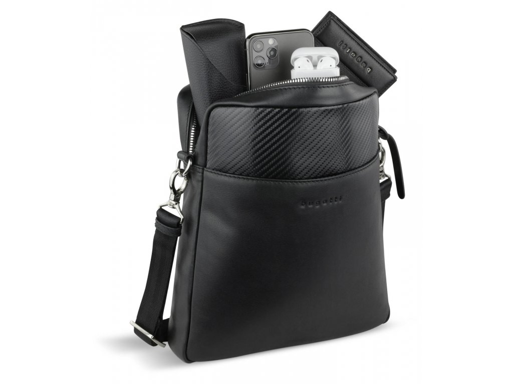 Pánská taška z hovězí kůže luxusní značky Bugatti v oblíbené černé barvě série Comet. Comet – unikátní kombinace materiálů, které dělají tuto kolekci tak výjimečnou. Tato kolekce na první pohled zaujme svým inovativním designem a netradiční kombinací hovězí hladké kůže v kombinaci se speciálně upravenou tzv. karbonovou kůží s 3D efektem. Tašku využijete do práce, na cesty nebo každodenní chození po městě. Elegantní design je spojen s kvalitou ve zpracování.