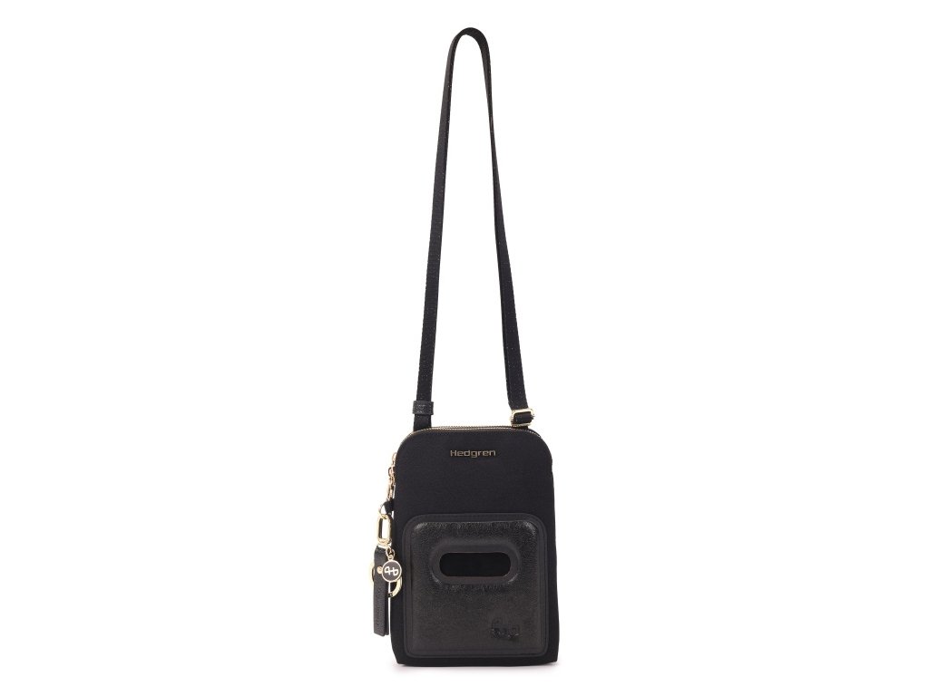 Taška dámská cross belgické značky Hedgren Fika Cortado v oblíbené černé se zlatými doplňky a zipem ( dle výrobce celebration black ) barvě s ochranou RFID pro denní nošení. Svou velikostí je ideální pro bezpečnou přepravu osobních dokladů a věcí. Taška má zabezpečenou ochranu před krádeží osobní identity či soukromých dat při technologii RFID (Radio Frequency Identification), která se používá při načtení bezkontaktních platebních karet nebo identifikačních dokladů. Taška je vyrobena ze 100% RPET polyesteru s detaily z ekologické kůže.