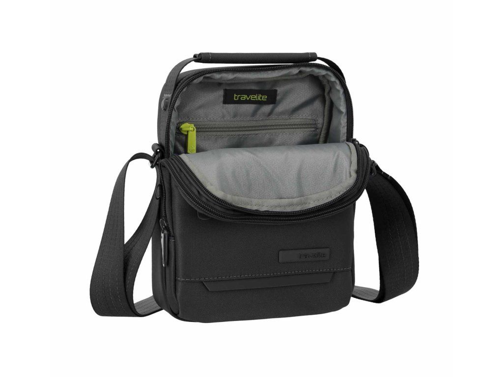 Pánská stylová a praktická textilní taška německé značky Travelite série Workfloow v oblíbené černé barvě. Tašku si oblíbíte díky komfortním rozměrům a uschováte do ní všechny své nejdůležitější věci, jako je peněženka, mobilní telefon, doklady i klíče. Tato taška má pro ochranu vašich věcí bezpečnostní zipy, které jdou připnout k integrovaným kroužkům.