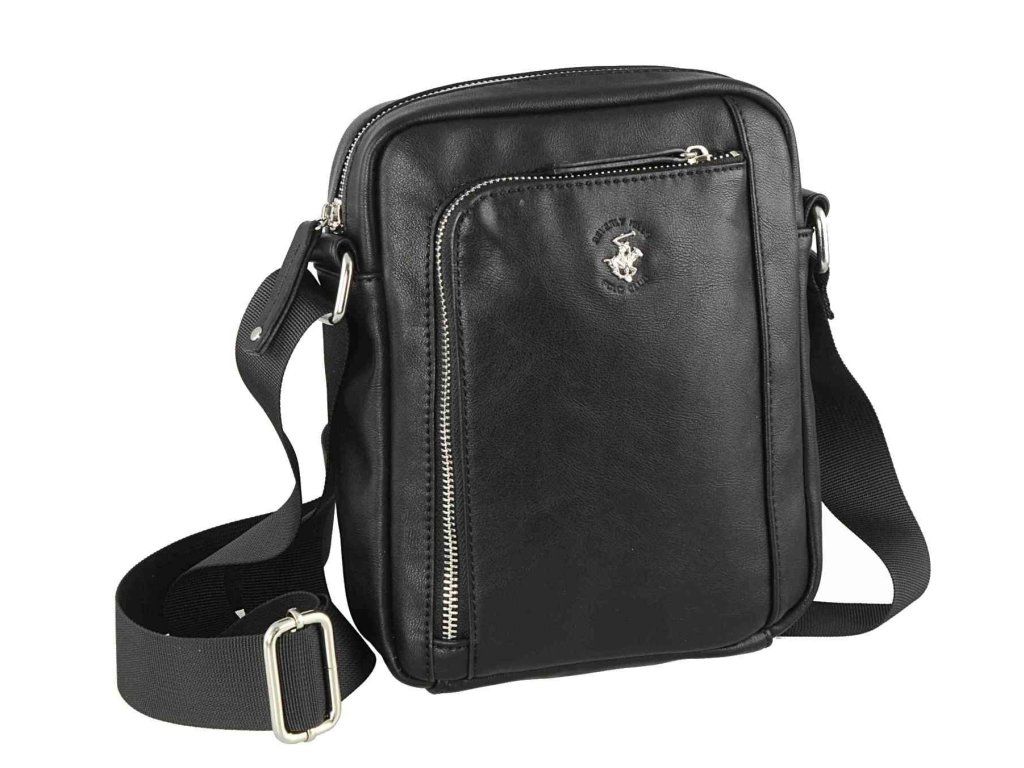 Pánská stylová příruční taška z eko kůže značky Beverly Hills v oblíbené černé barvě. Tašku můžete nosit do práce, školy, na sport či volný čas. Uschováte do ní své nejdůležitější osobní věci, jako je mobilní telefon, peněženka a doklady.