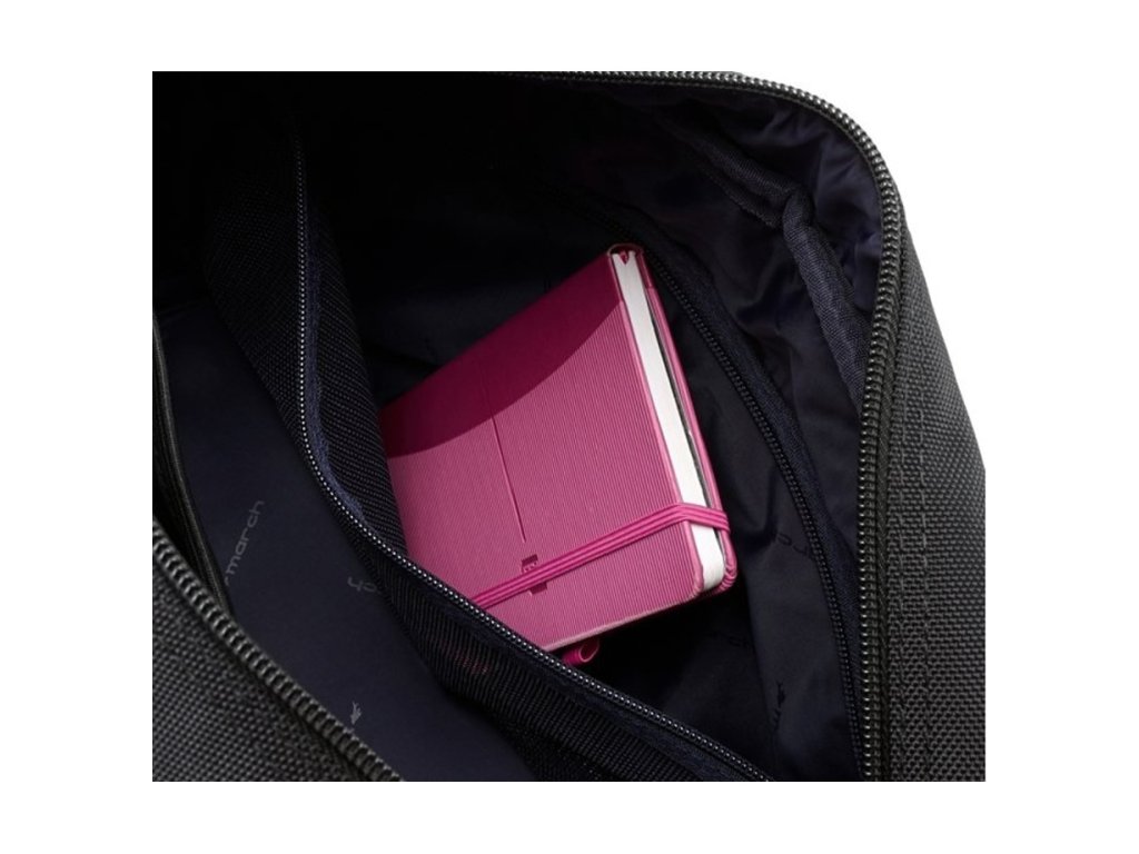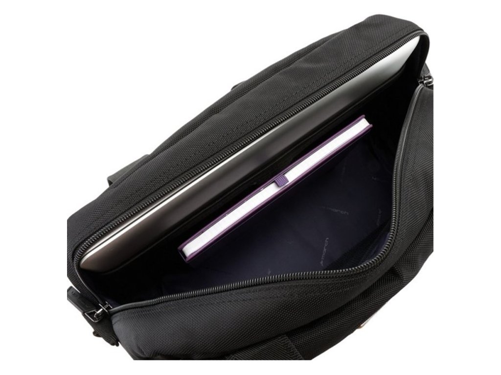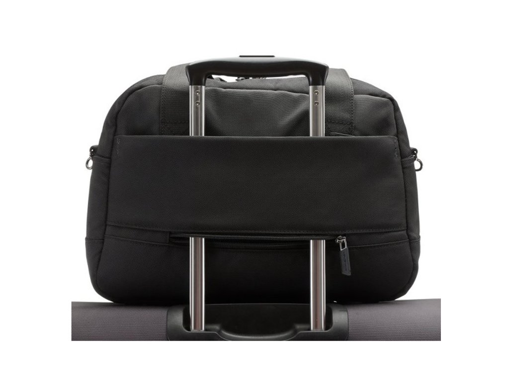 - Na popruhu přes rameno nebo zavěsit na výsuvné madlo kufru.