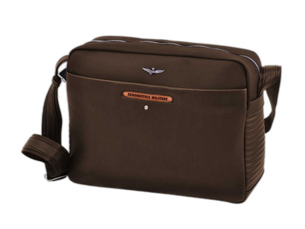 Stylová PC taška messenger přes rameno prestižní značky Aeronautica Militare série SKY v oblíbené hnědé barvě, vyznačující se kombinací dvou materiálů, imitace kůže a technické tkaniny, a také přední kapsou na smartphone s logem Aeronautica Militare. Skvělá a kvalitní taška se Vám stane ideálním společníkem ať už na cestách do práce, do společnosti či na volný čas. Vhodná také jako palubní taška pro cestování.