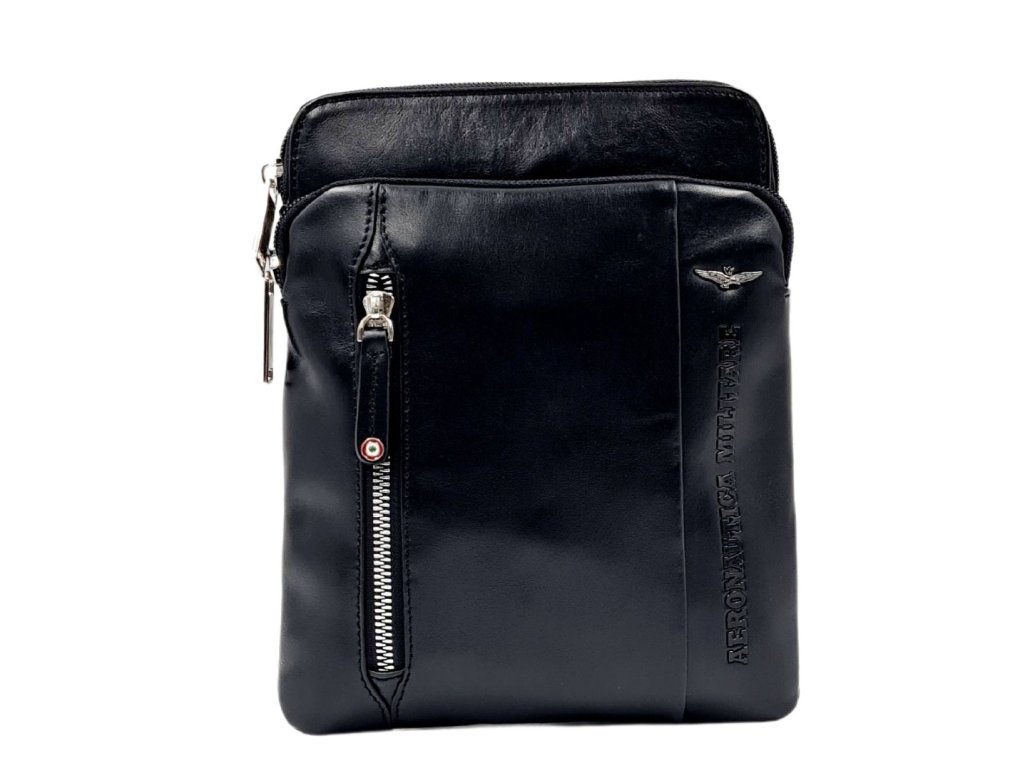 Stylová kožená cross taška přes rameno nebo křížem na osobní věci prestižní značky Aeronautica Militare série Thunder v černé barvě. Tašku si oblíbíte díky komfortním rozměrům a uschováte do ní všechny své nejdůležitější věci, jako je peněženka, mobilní telefon, doklady i klíče.