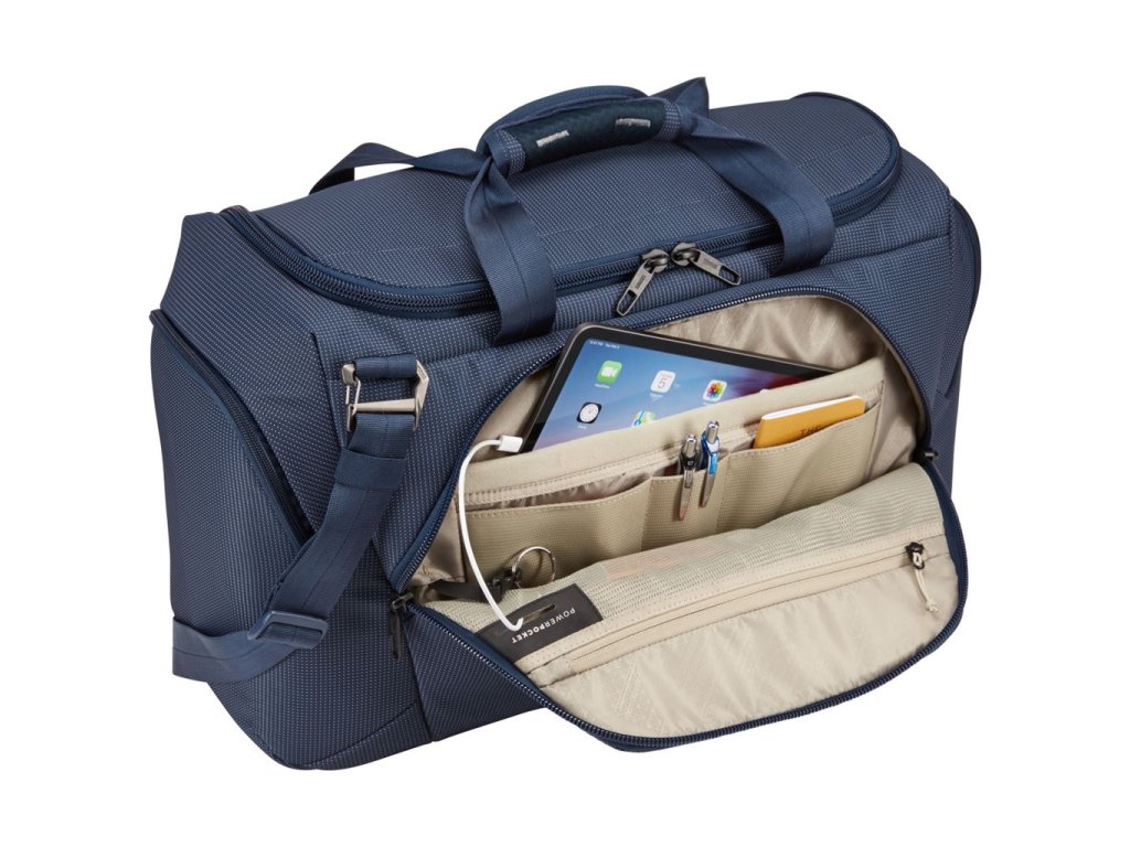 - Uspořádejte drobnou elektroniku a příslušenství v předním oddílu s kapsami, pružnými poutky, kapsou na zip a systémem vedení kabelů PowerPocket pro nabíjení na cestách.