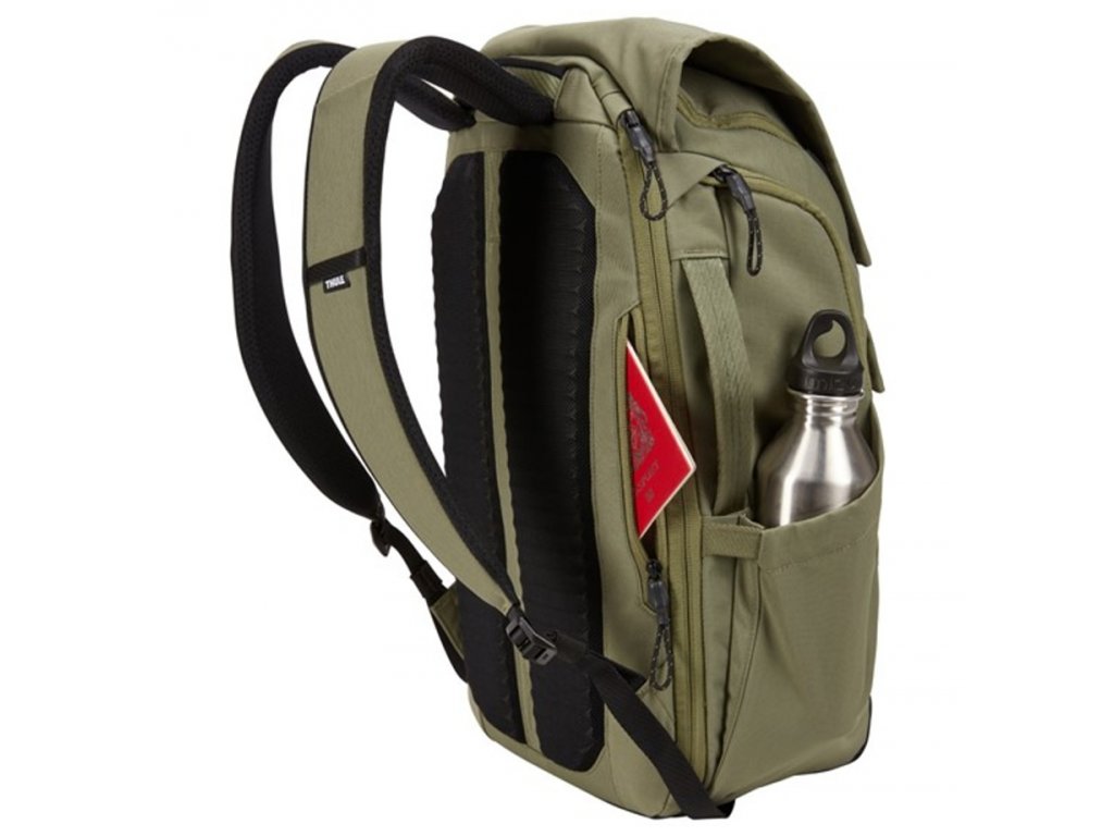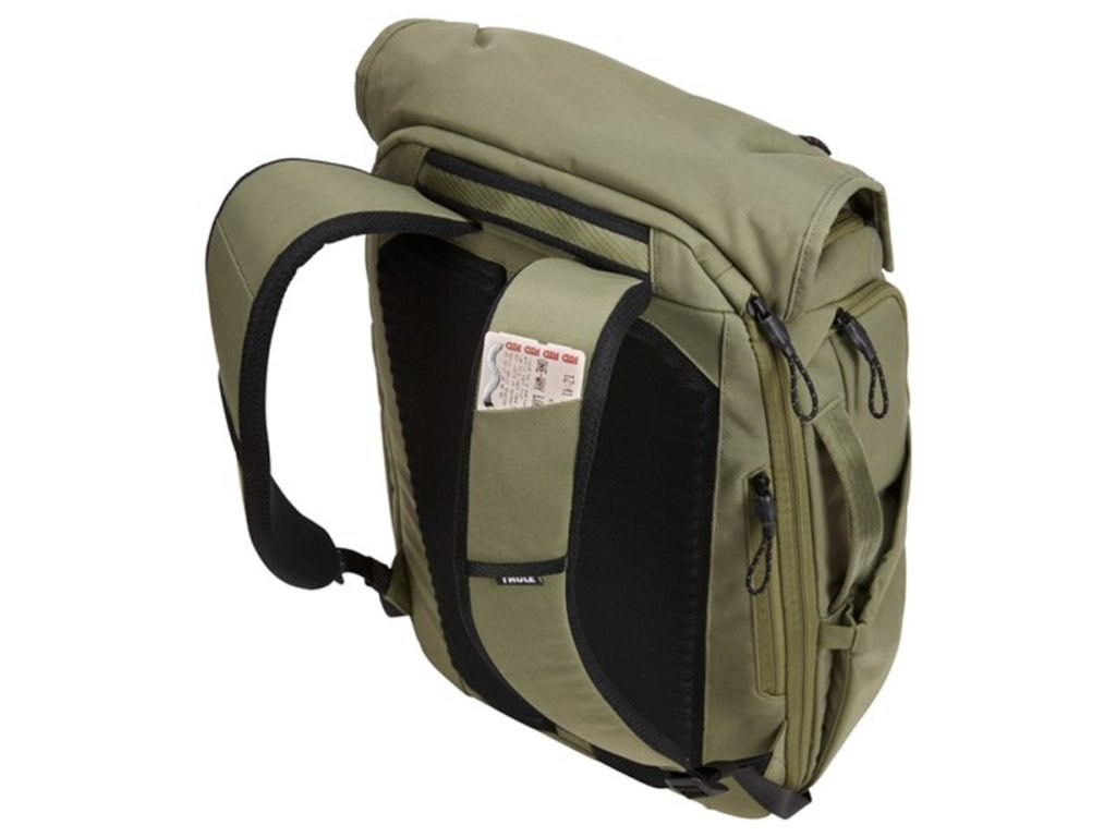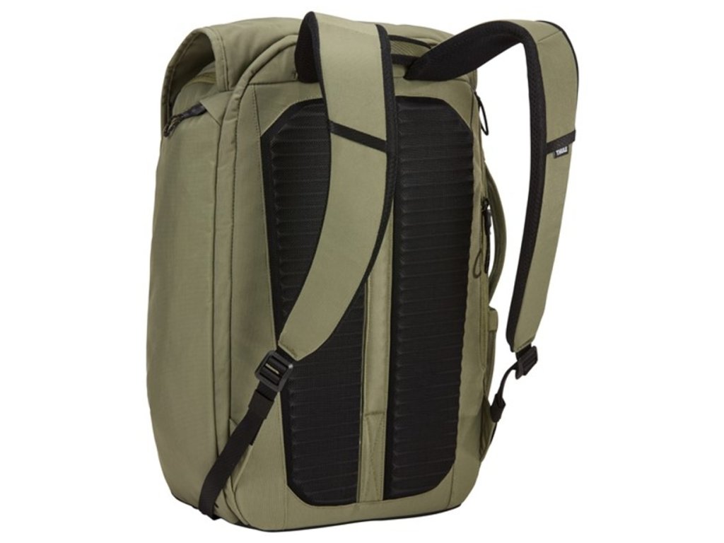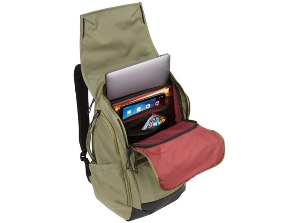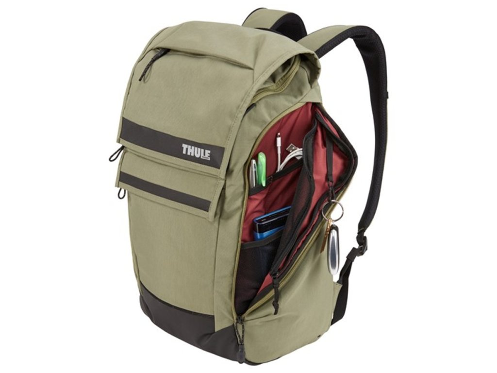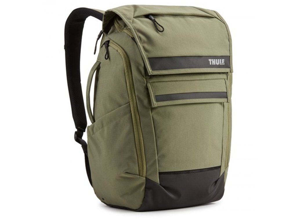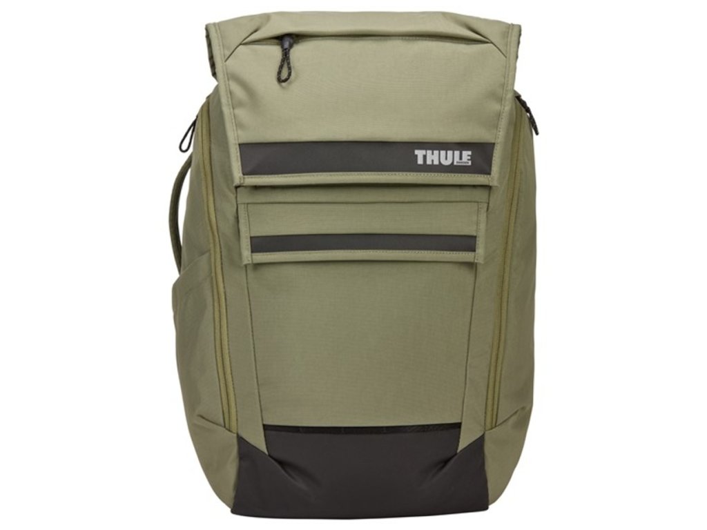 Batoh Thule Paramount v olivové barvě odolný vůči povětrnostním podmínkám s bezpečnostními místy vstupu a uspořádáním pro moderního člověka na každodenní nošení.
