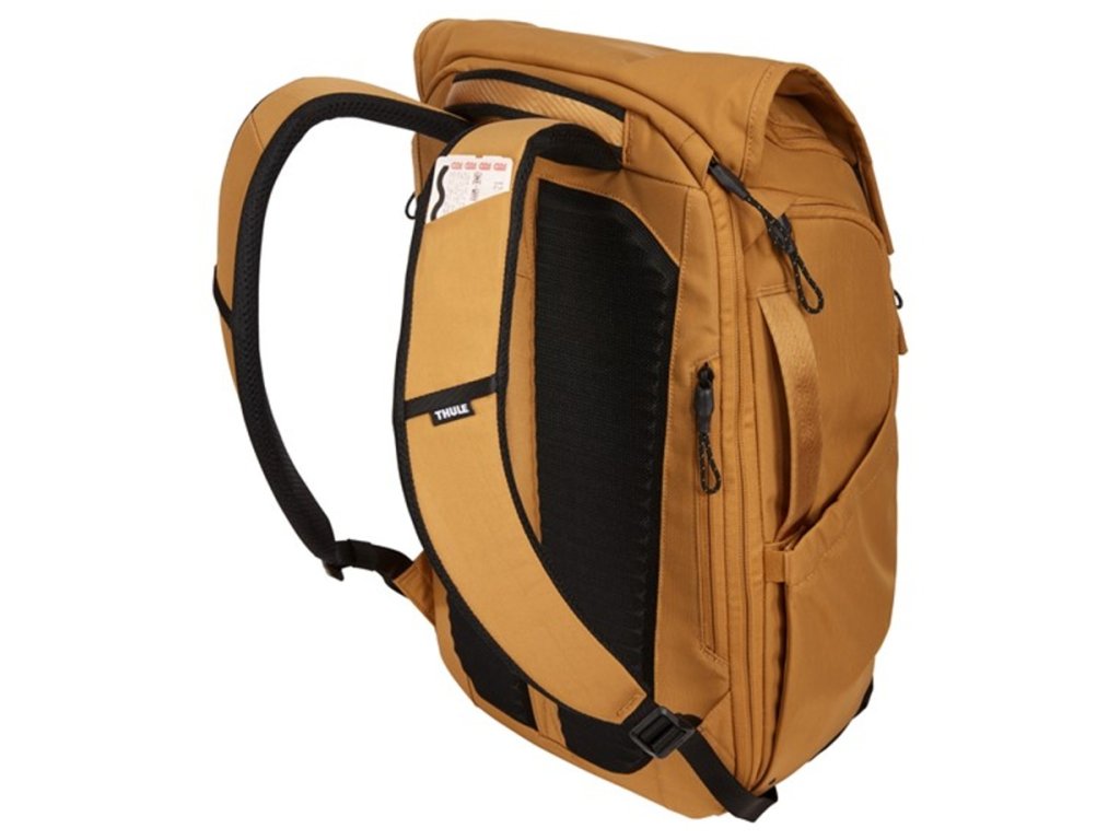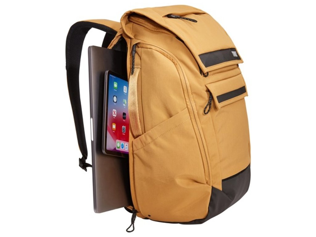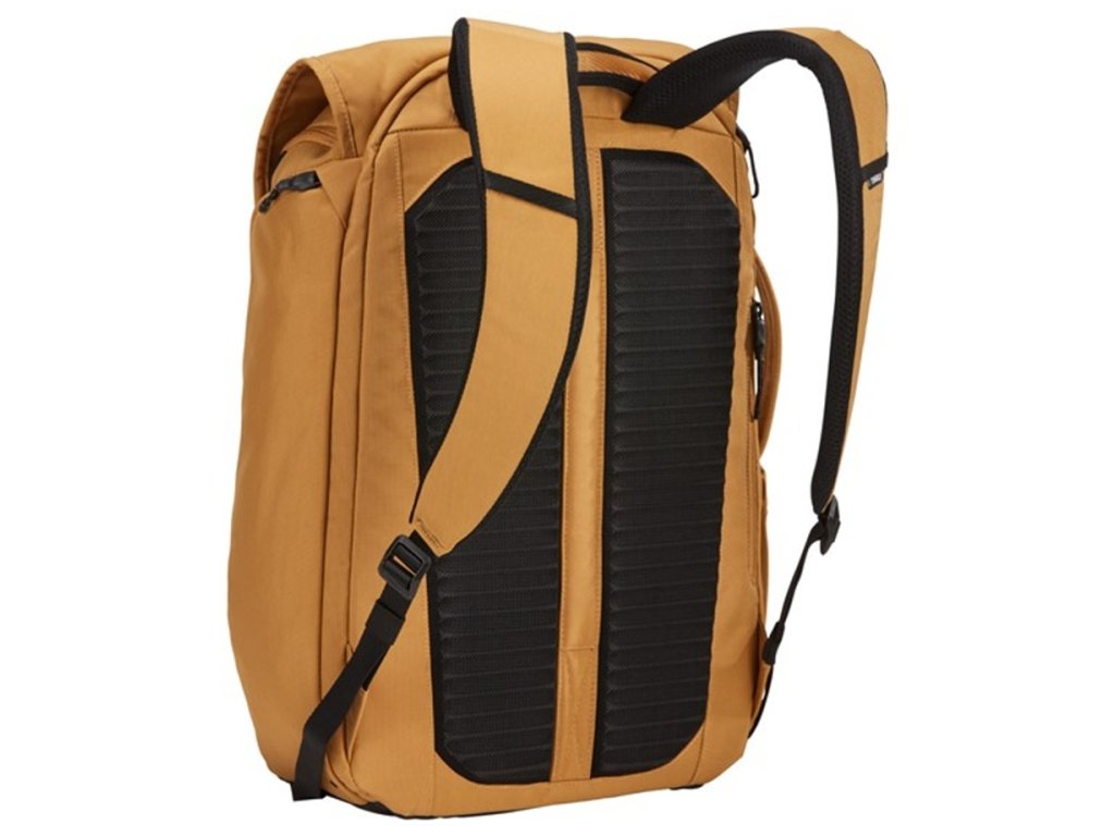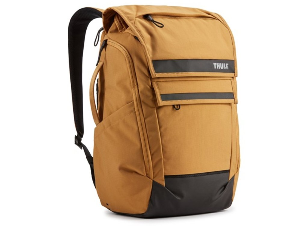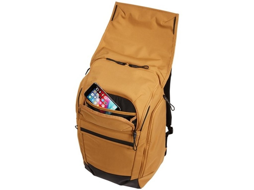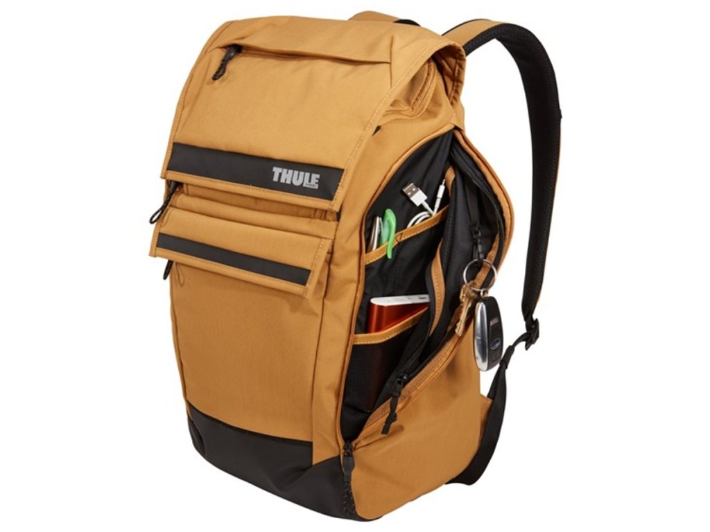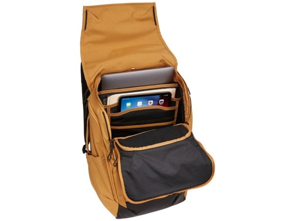Batoh Thule Paramount v oranžovo hnědé barvě odolný vůči povětrnostním podmínkám s bezpečnostními místy vstupu a uspořádáním pro moderního člověka na každodenní nošení.