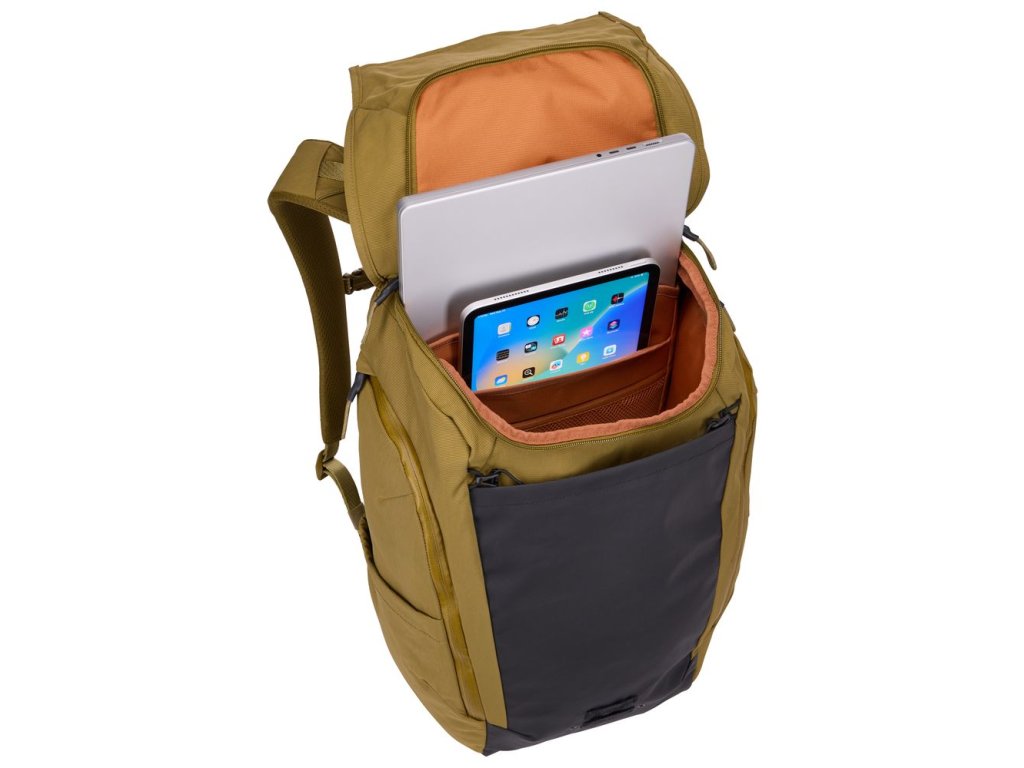 Batoh s moderním vzhledem, který vyjadřuje výrazný charakter značky Thule, ma čistý, moderní styl a syté zemité barvy a je připraven na pracovní den v neformálním stylu i na setkání s přáteli po práci.