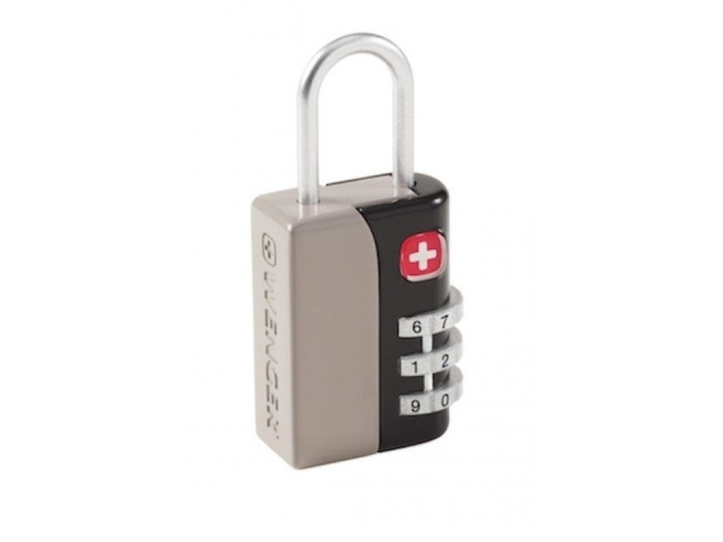 Kombinační číselný zámek švýcarské značky wenger v šedé barvě pro uzamčení jezdců zipů u kufru nebo jiného zavazadla